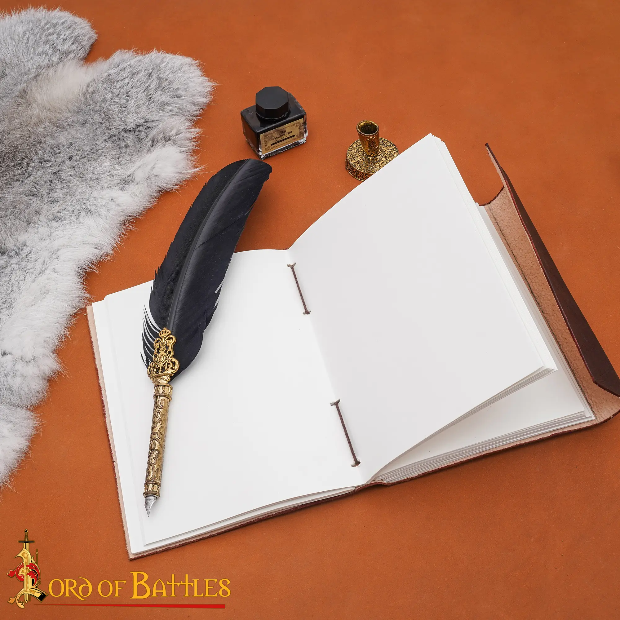 Inside, the journal contains 110 pages of handmade, acid-free paper, which are smooth for writing, sketching, or note-keeping. The paper is suitable for pens, pencils, and quills, with minimal bleed-through and a pleasant texture that enhances the writing experience.