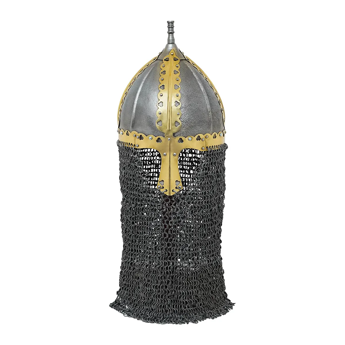 Our reproduction is directly inspired by an original found in a 10th-century Slavic-Varangian settlement named Gnezdovo or Gnyozdovo near Smolensk in modern-day Russia. Many typical Scandinavian artefacts have been found simultaneously with this helmet, making it a good choice for anyone wanting to reenact an eastern Viking / Varangian / Russ / Slav character. However, this helmet may not be suitable if you’re depicting a Western Viking raiding England.