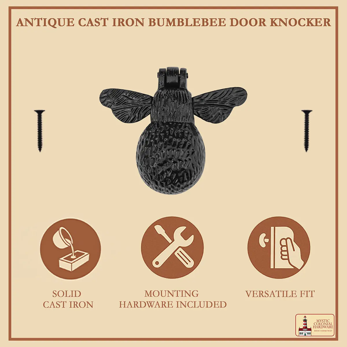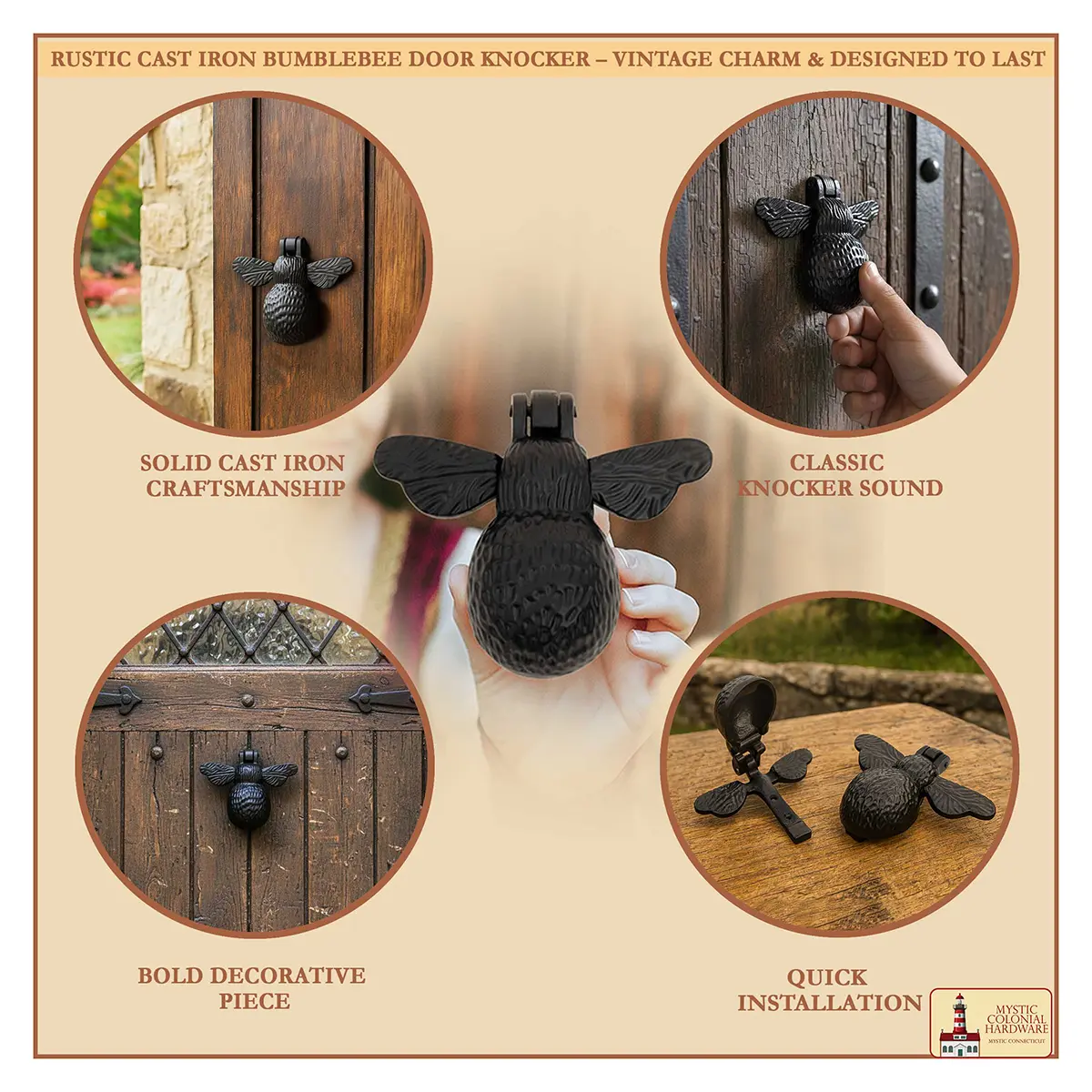 Rustic Cast Iron Bumblebee Door Knocker: Ideal for Victorian, Colonial, Retro, Steampunk, Gothic, Baroque, and Medieval Settings, (10.3×12.2) cm