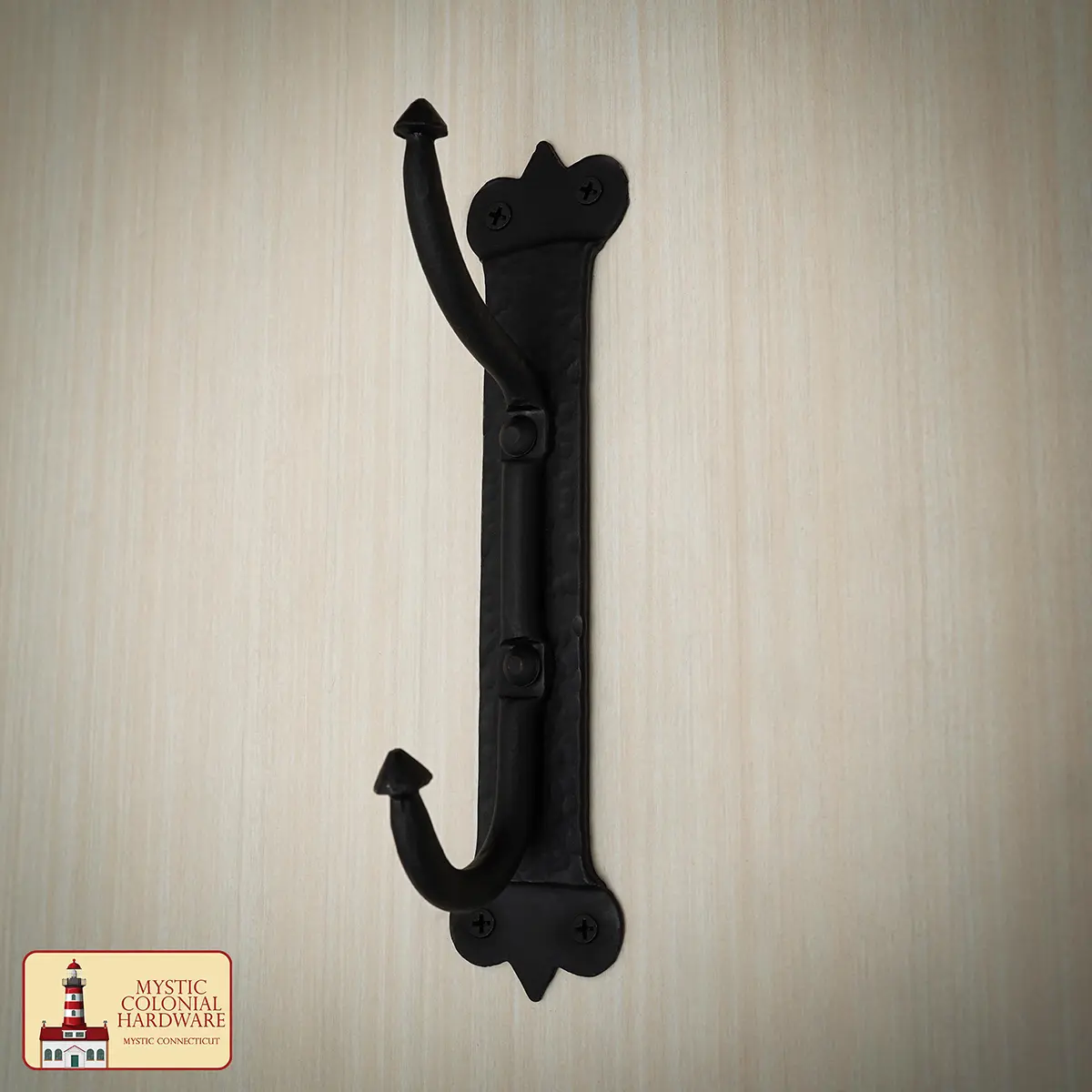 Crafted from solid iron, this hook is built to last. The black rustic finish enhances its antique appeal while blending seamlessly with gothic, medieval, farmhouse, or vintage décor. Its dual-hook design allows you to hang multiple items at once—perfect for coats, hats, scarves, keys, towels, or bags—making it as versatile as it is stylish.