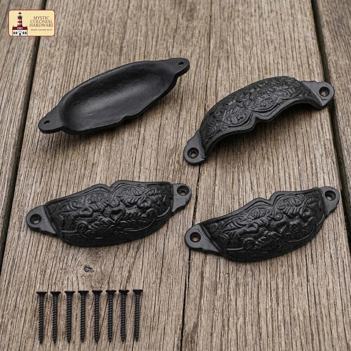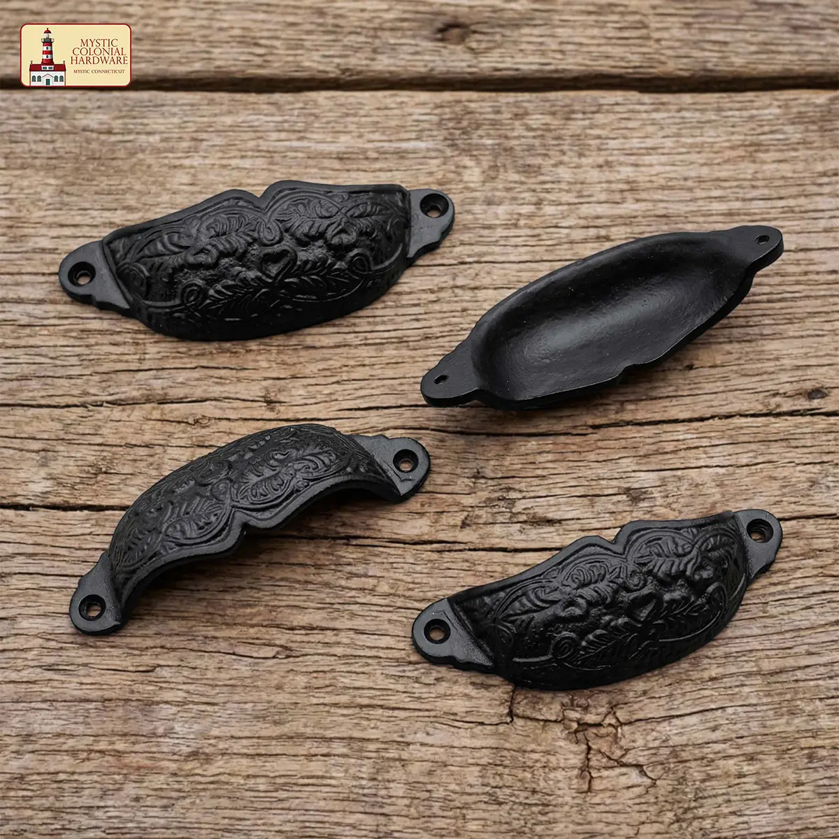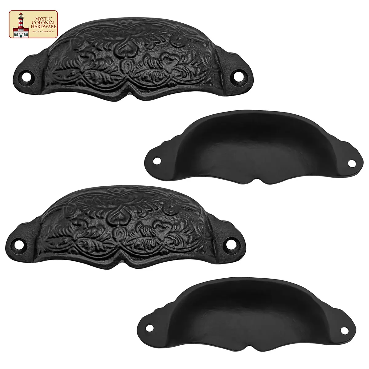 Introduce an earthy, enchanting element to your furniture or cabinetry with this Set of 4 Foliage Cup Style Cabinet Pulls. Made from solid cast iron and finished in a traditional oil-blackened tone, these medieval-inspired pulls offer both durability and visual appeal.