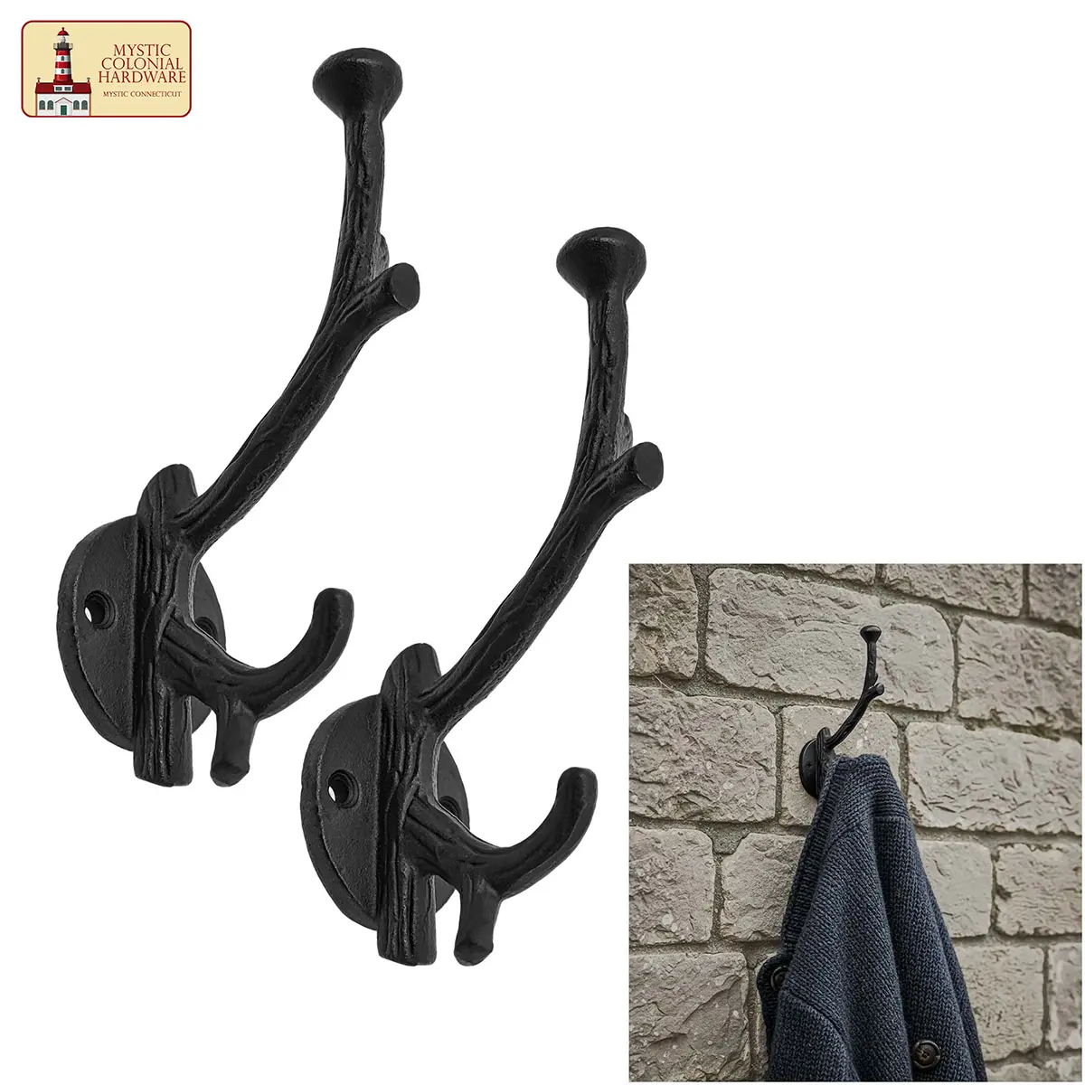 Rustic Cast Iron Wall Hooks, Heavy Duty Retro Utility Hooks for Hanging Coat, Bag, Towel, Robe, Hat and More, Finish: Oil Blackened