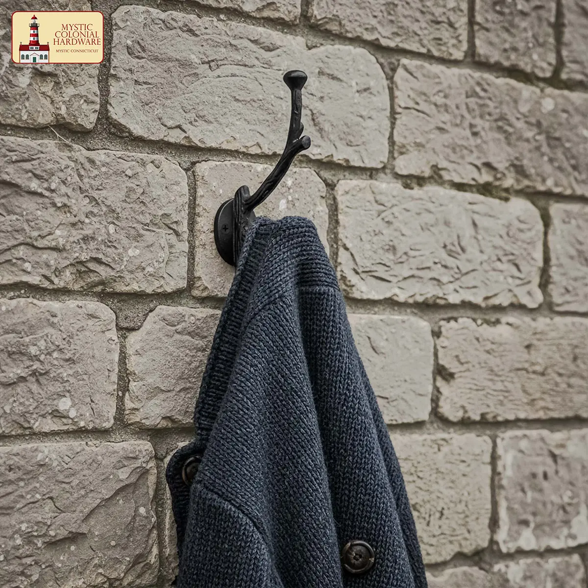 Each hook in this set features dual prongs—a longer upper hook and a shorter lower hook—allowing for layered storage without crowding. The classic black finish complements all decor styles, bringing warmth and subtle sophistication to your hallway, entryway, bathroom, or bedroom.
