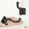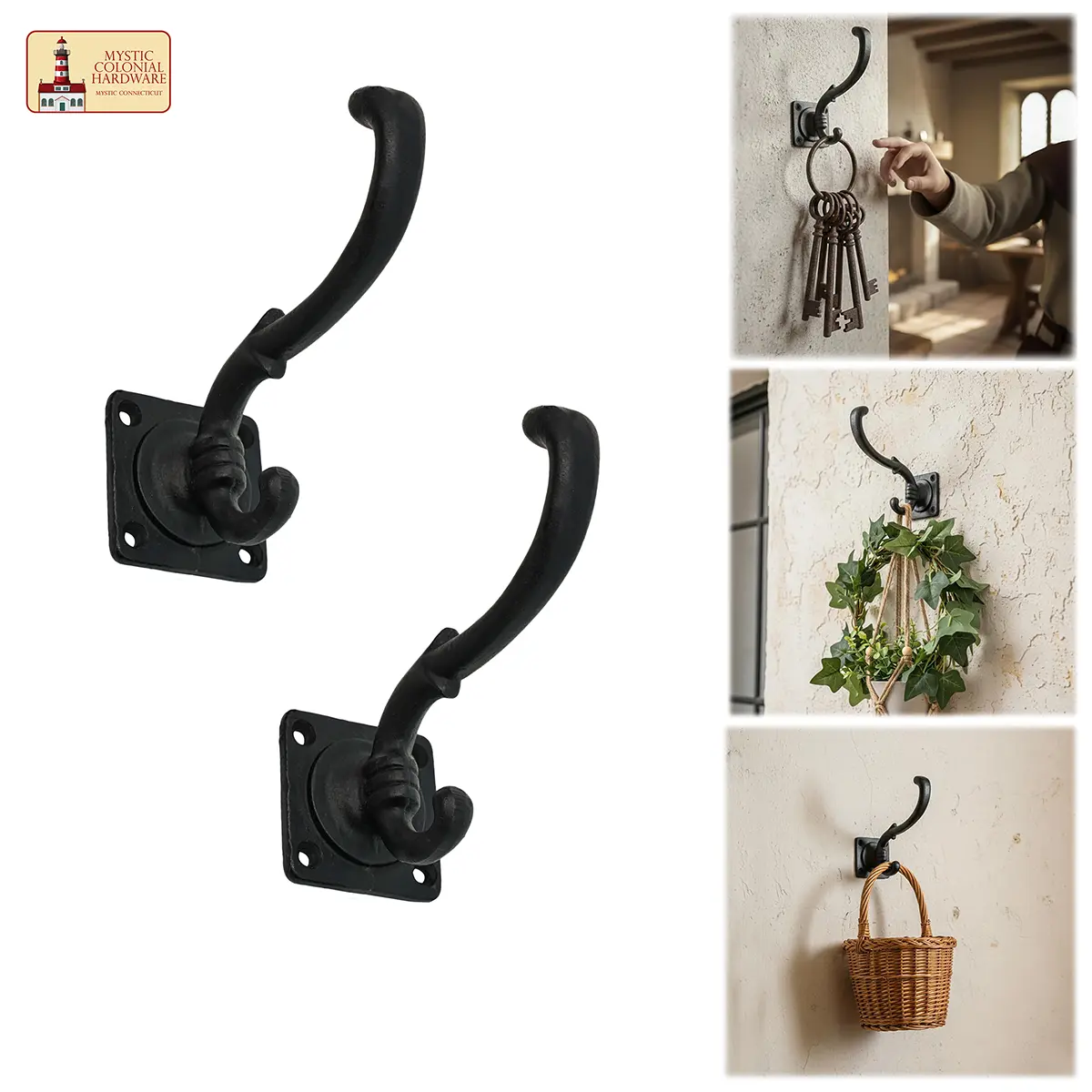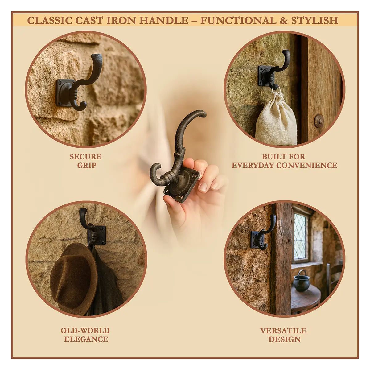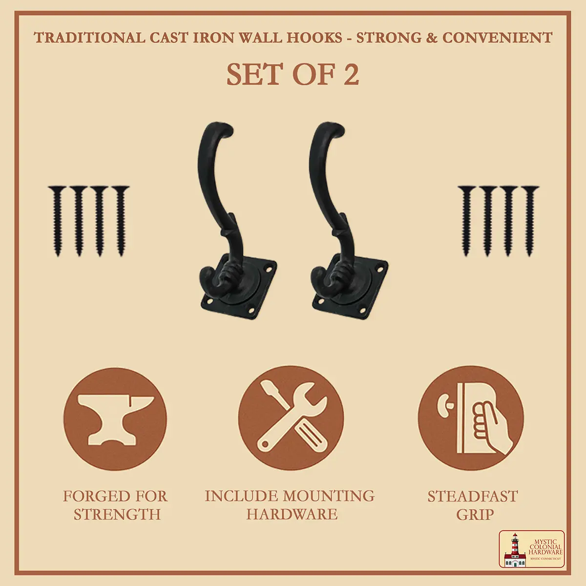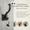 Rustic Cast Iron Wall Hooks, Heavy Duty Retro Utility Hooks for Hanging Coat, Bag, Towel, Robe, Hat and More, Pack of 2, Black