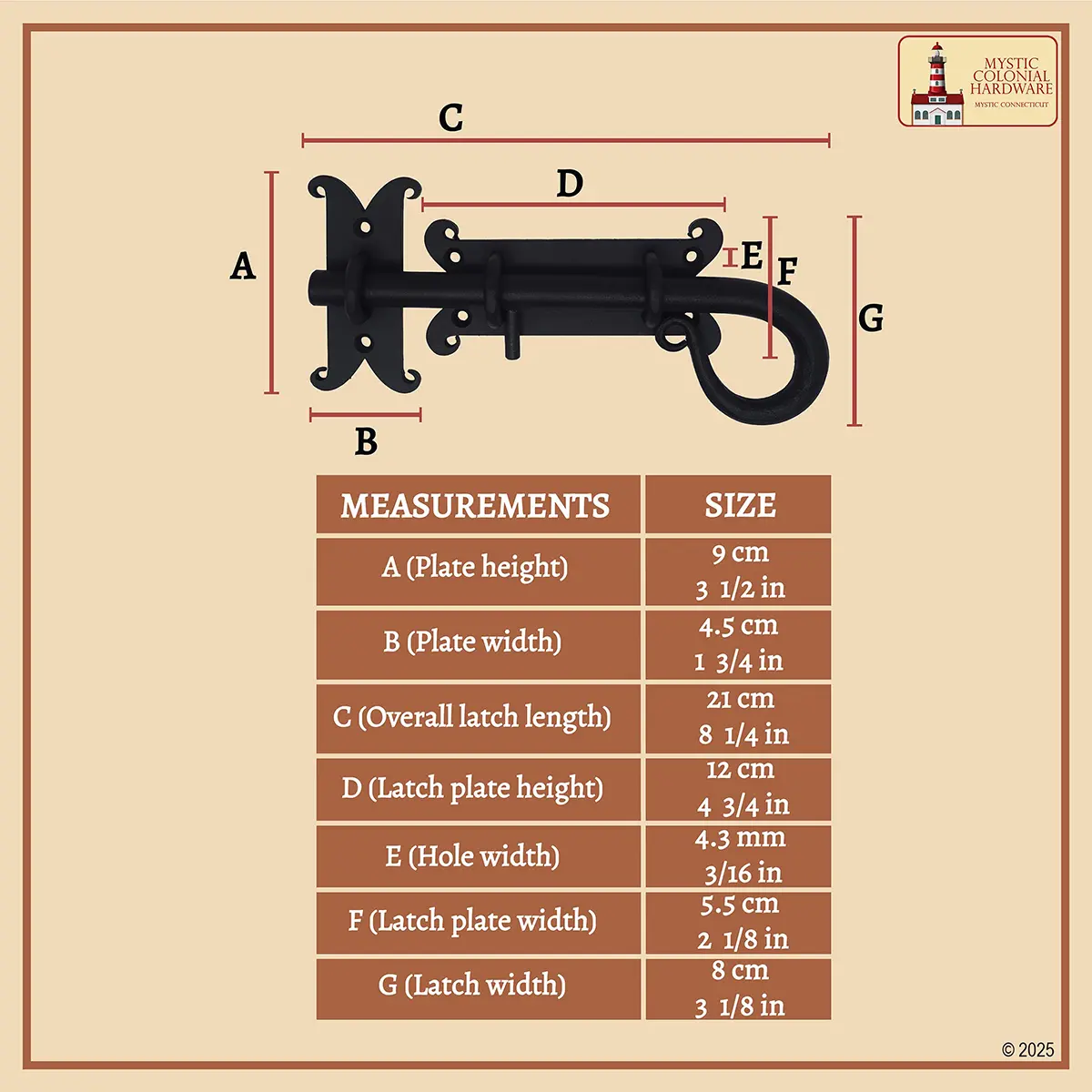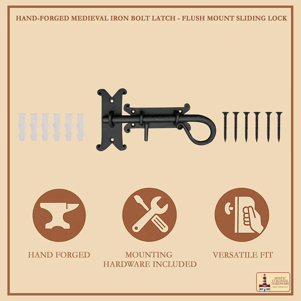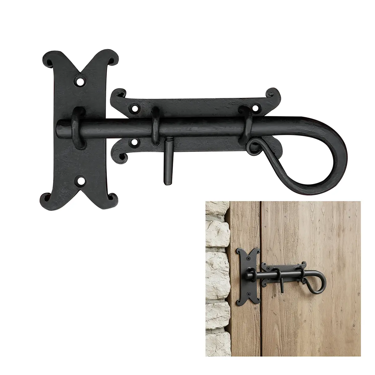 Installation is quick and straightforward with the included screws, making it suitable for both functional use and decorative projects. Whether for a garden gate, rustic door, or vintage-inspired interior, this bolt delivers both utility and old-world craftsmanship.