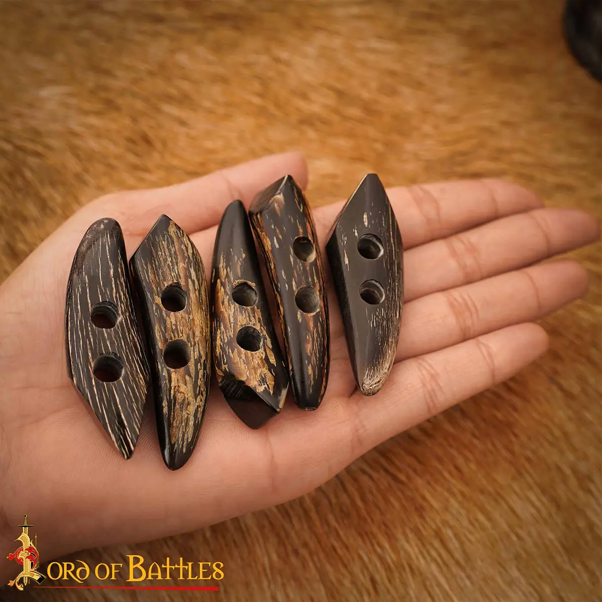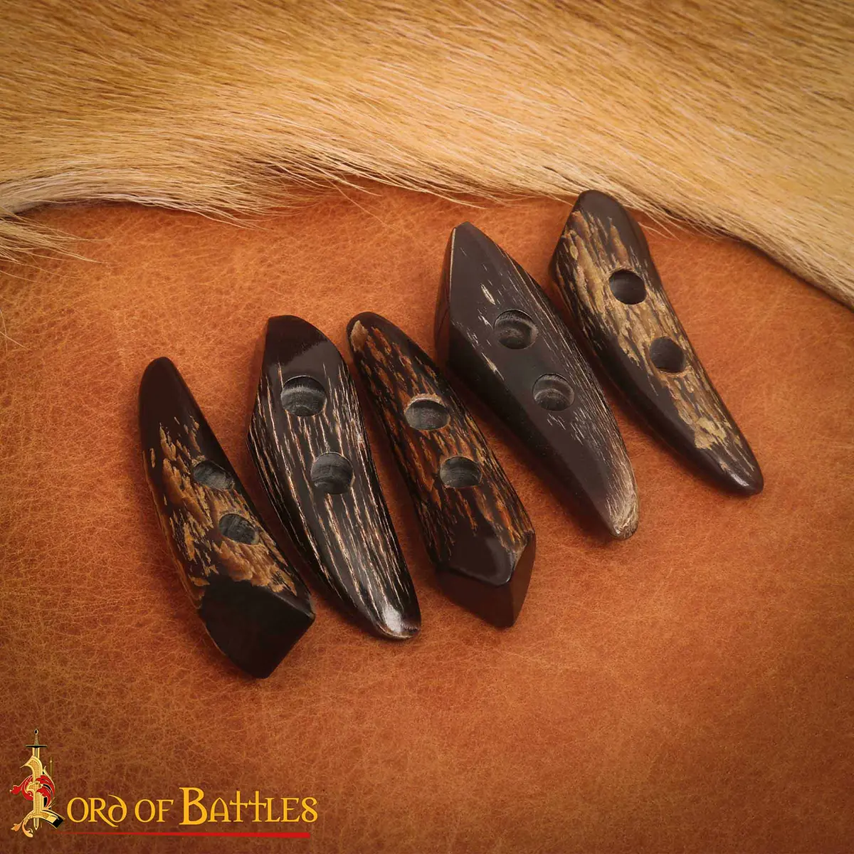 Step into the world of authenticity and craftsmanship with the Sharp Edged Rugged Horn Toggles – Set of 5, hand-carved from genuine ox horn to add strength, beauty, and raw character to your medieval or fantasy gear.