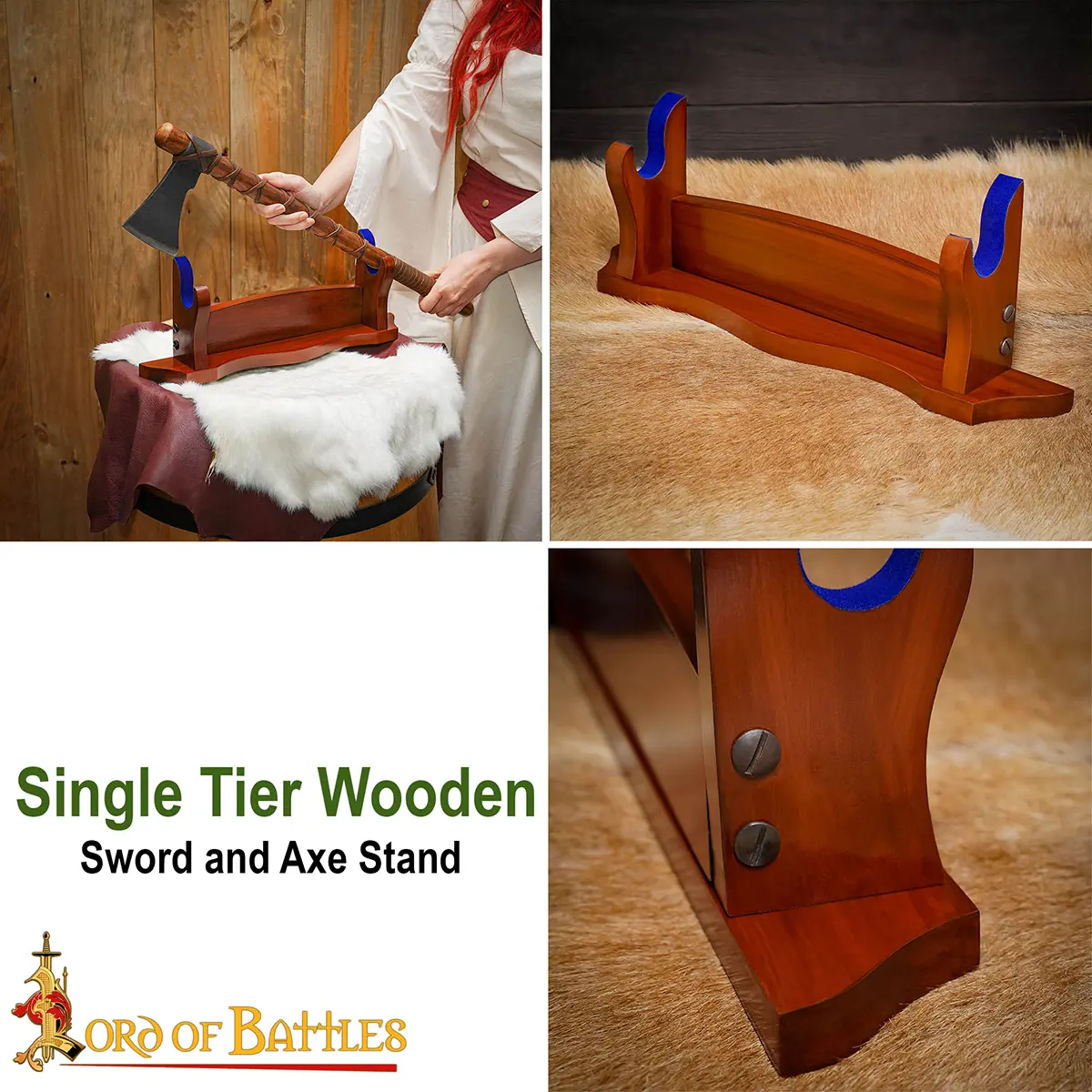 If you’re looking for a way to showcase your most favoured axe or sword, consider getting this wooden stand! Whether you’re a seasoned collector or just starting out, this wooden stand is a practical and stylish solution for displaying your weapon with pride! So it’s more than just a simple holder for your cherished blades. If you’re looking for a way to enhance your sword collection, consider getting this wooden sword and axe stand. For sword enthusiasts, historical reenactors, and collectors, a wooden sword stand is a must-have. It not only protects your valuable sword or axe, but it also makes a great gift for many art enthusiasts out there!