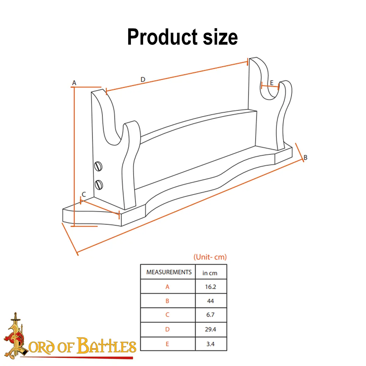 Handcrafted from GENUINE 1.8cm thick HARDWOOD, it is hard-wearing and will last for years to come. It is lined with soft, supple velvet that keeps the weapon protected, while the stand holds it firmly at an easily accessible position. The two handles that will support your weapon are ideally spaced at approximately 33cm. The total length is 43.5cm, the height is 15.8cm and the base is 6.5cm wide.