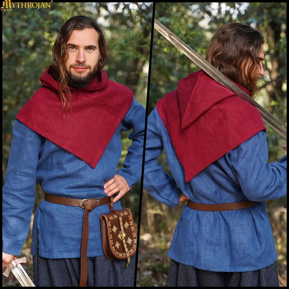 The design includes the iconic pointed hood with a shoulder-length cape, offering protection against wind, drizzle, and sun while also adding that unmistakable Viking look. Its versatile cut provides freedom of movement, making it just as practical in battle reenactments as it is around the campfire.