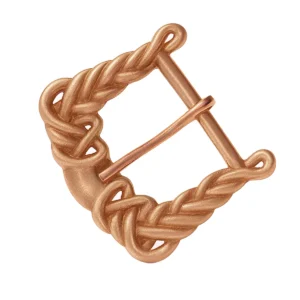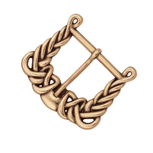 Cast in solid bronze using the traditional lost-wax casting method, this buckle features a rectangular frame enhanced by symmetrical braided motifs—a visual representation of interconnectedness, craftsmanship, and durability. Two terminal holes allow it to be securely riveted or sewn to leather, while the solid tongue provides functionality for belts or gear straps.
