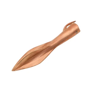 This 4.5 cm Ancient Near Eastern bronze arrowhead is a faithful reproduction of the kind used by warriors and hunters across Mesopotamia, Persia, and the Levant during the transitional centuries between the Late Bronze and Early Iron Ages. Characterized by its elegant leaf blade and distinctive rear hook, this form ensured a strong and stable fit on wooden shafts—crucial for high-impact strikes or rapid volleys.