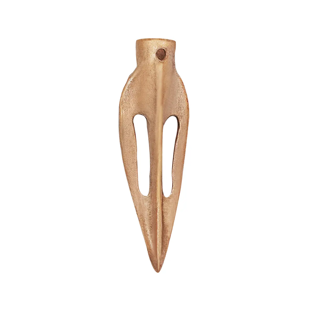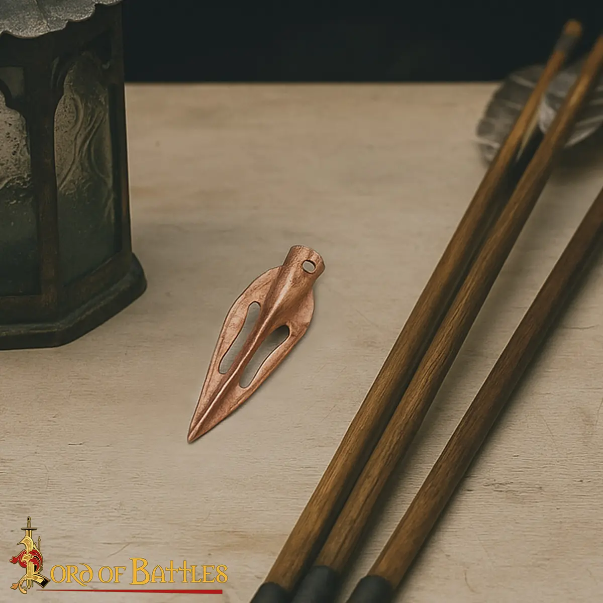 This pierced bronze arrowhead reflects the ingenuity of early Eurasian weapon-smiths. Measuring approx. 3.5 cm in length, it is cast using the ancient lost-wax technique, known for its detail and strength. The blade features two deep cut-outs on either side of the central ridge—reducing weight while preserving aerodynamic stability.