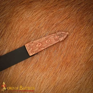 Whether you’re recreating a Viking warrior’s ensemble or restoring a historical belt, this solid bronze strap end is both decorative and durable. Its compact shape fits snugly on belts up to 1.5 cm wide, making it ideal for narrow leatherwork projects with historical accuracy in mind.