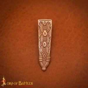This finely detailed Viking Age Solid Bronze Belt Tip is inspired by authentic Viking Age artefacts unearthed across Scandinavia and Northern Europe. Strap ends like these were not merely functional—they signified status, craftsmanship, and cultural identity. Worn by warriors, traders, and nobles alike between the 8th and 11th centuries, such fittings were commonly found on belts used to carry tools, weapons, or personal items.