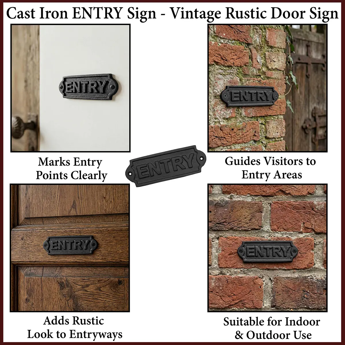 Welcome your guests with timeless charm using the Cast Iron Entry Door Sign—a vintage-style accent designed to enhance any doorway with character and warmth. Crafted from high-quality cast iron, this rustic plaque is more than just a sign—it’s a statement of your unique aesthetic.