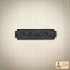 The rectangular shape is accentuated by concave corners and features raised sans-serif lettering that reads “Washroom” across the center. The inset background enhances the text for added visibility and depth, while the dark, weathered finish gives the piece an antique feel that fits beautifully into various décor styles—from steampunk and gothic to rustic farmhouse and cozy cottage.
