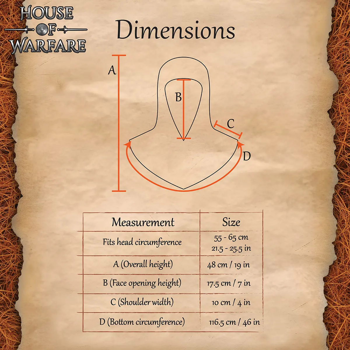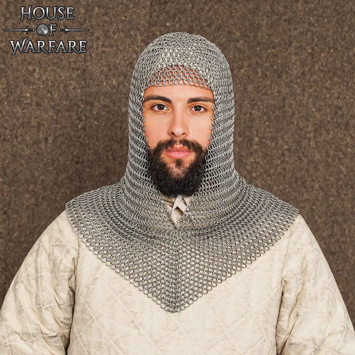 Chainmail Coif – 8mm Butted Ring – 16 Gauge, Stainless Steel – Ideal for LARP, Cosplay & Film Costumes