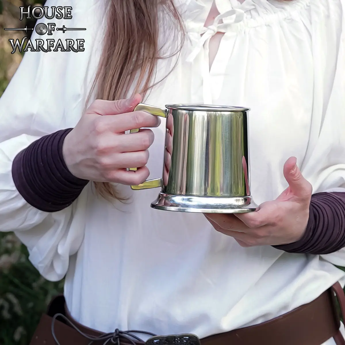 The sleek stainless steel body has been crafted with care, making it both durable and rust-resistant, ensuring it will last through countless celebrations. Its plain polished surface also makes it ideal for engraving, letting you personalize it with a name, crest, or special message. Whether you’re preparing for a medieval fair, celebrating at a renaissance fair, or looking for a unique gift, this tankard delivers both function and style.