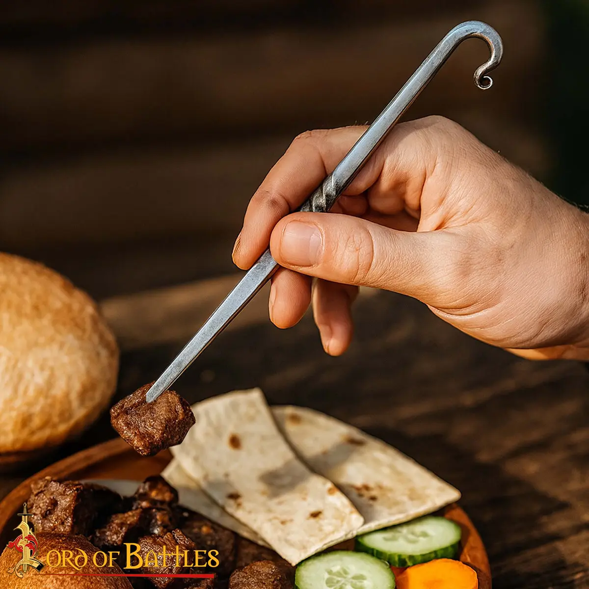This Viking skewer is ideal for themed dining, LARP events, renaissance fairs, outdoor cooking, or as a unique historical table accessory.