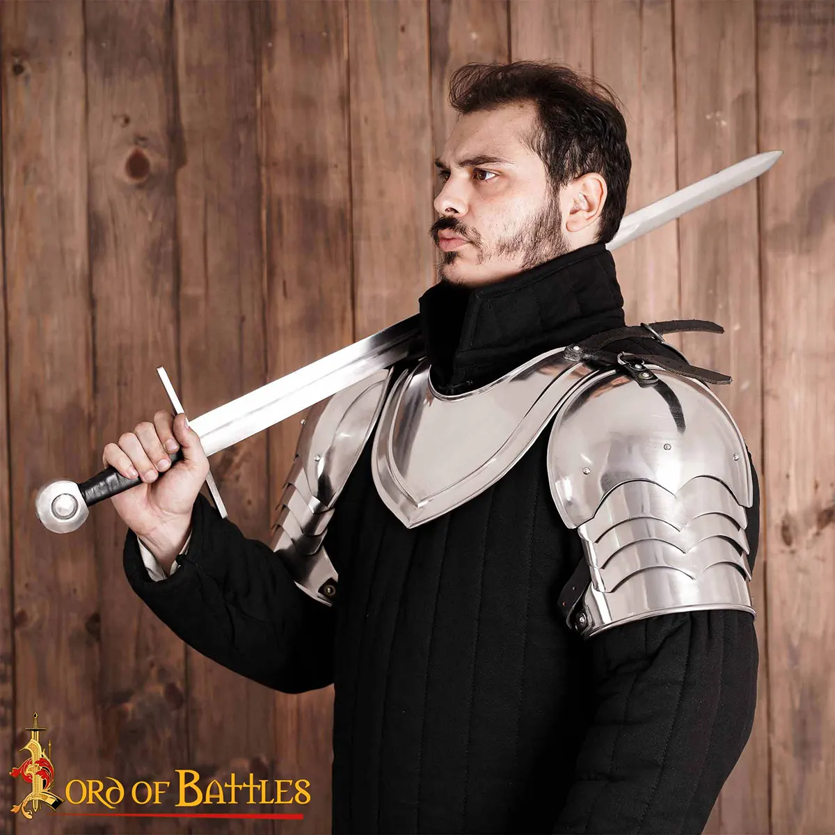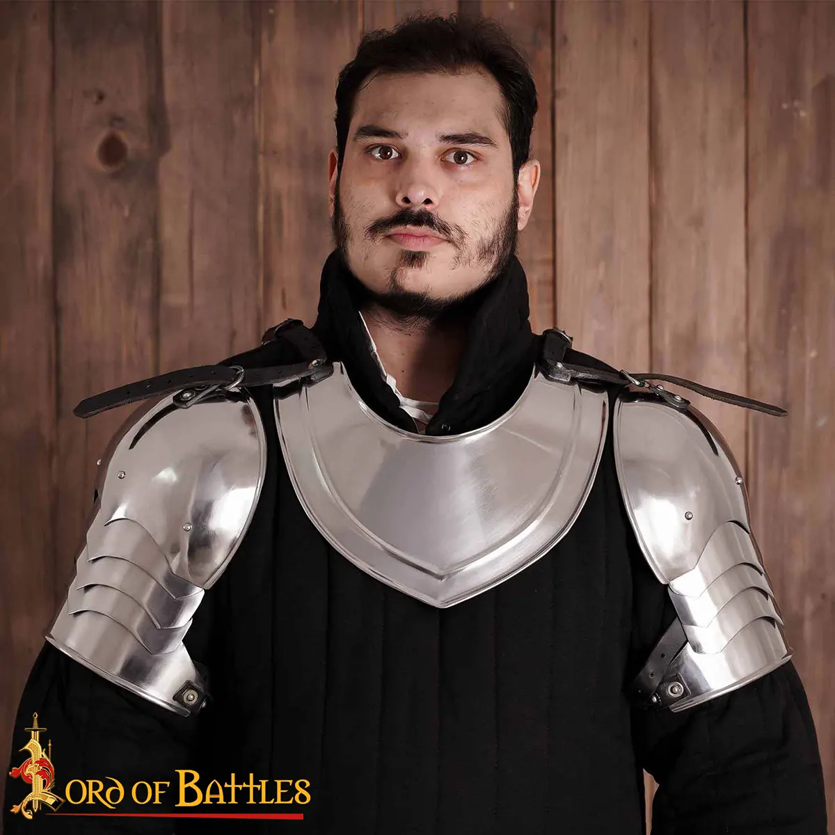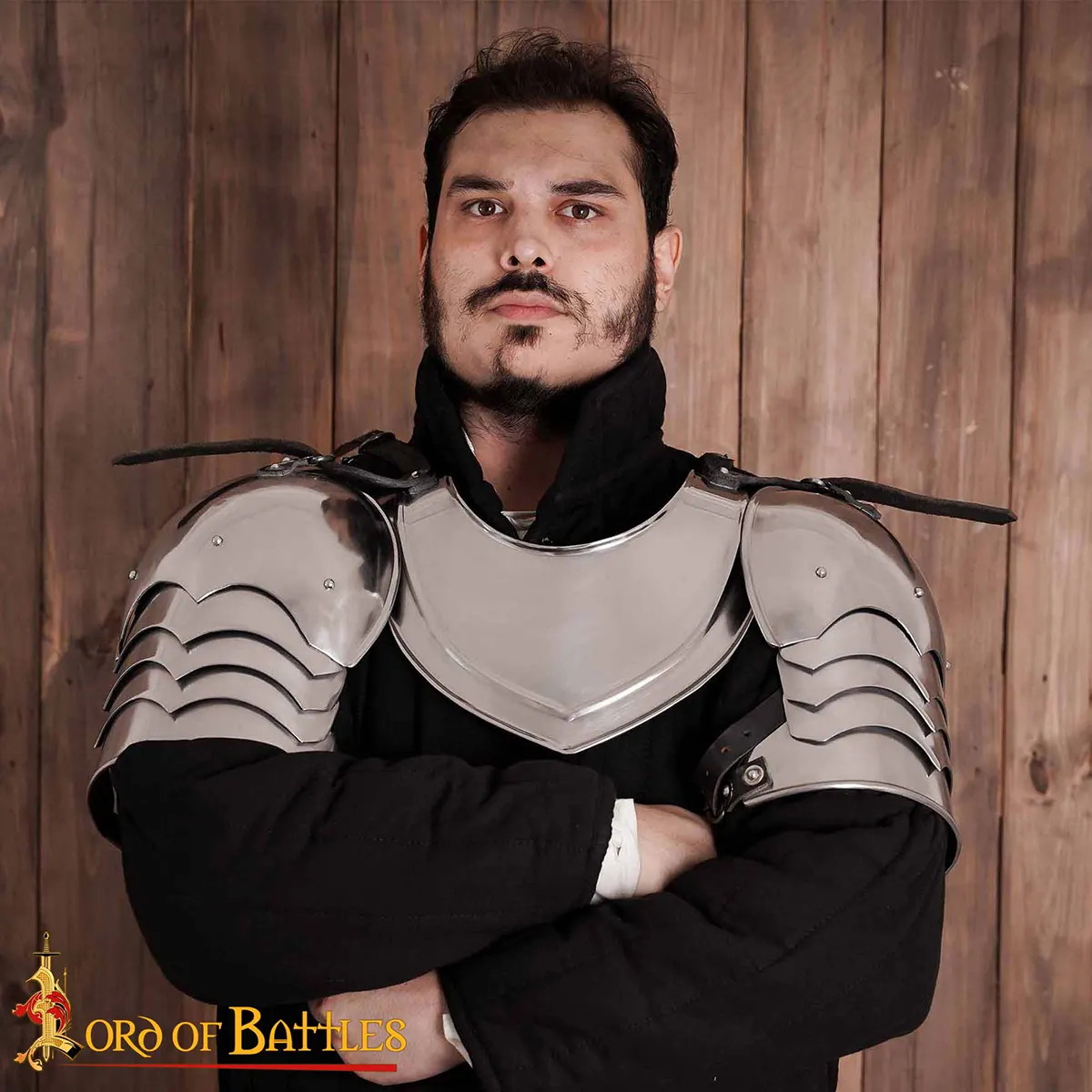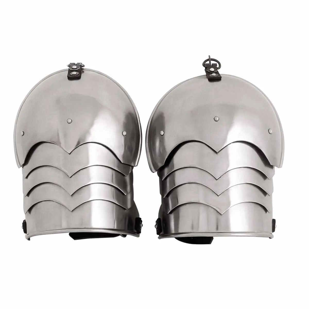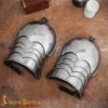 Our matched set of Late Medieval spaulders is well articulated for increased flexibility and range of movement. Both of them have centre buckles of sturdy steel that can easily be anchored onto the leather straps of a gorget or breastplate.