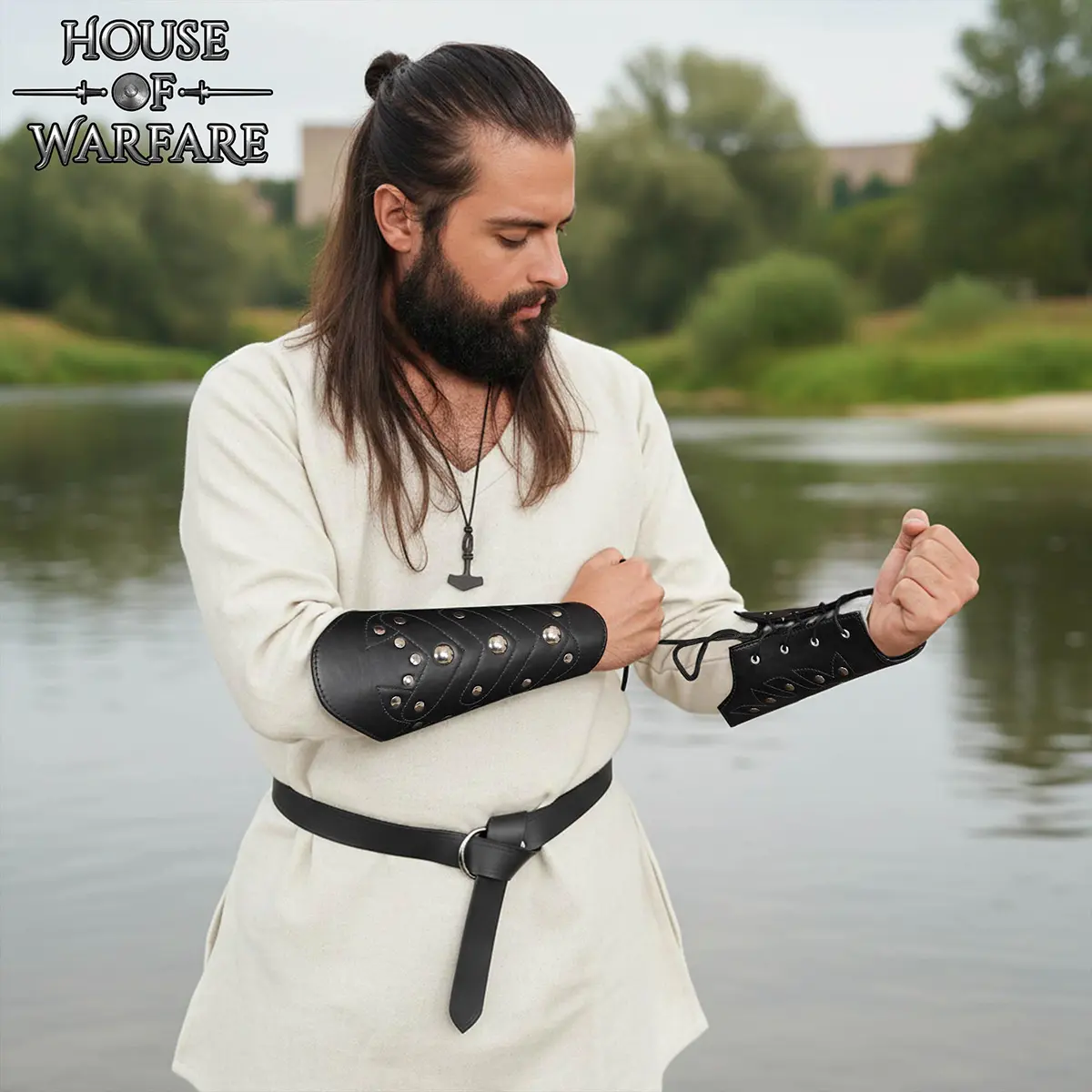 These bracers work well as medieval leather bracers for costume setups, for dark fantasy characters, or as leather arm armor for stage and roleplay use. They are lightweight, flexible, and easy to put on, making them a reliable accessory for repeated use.