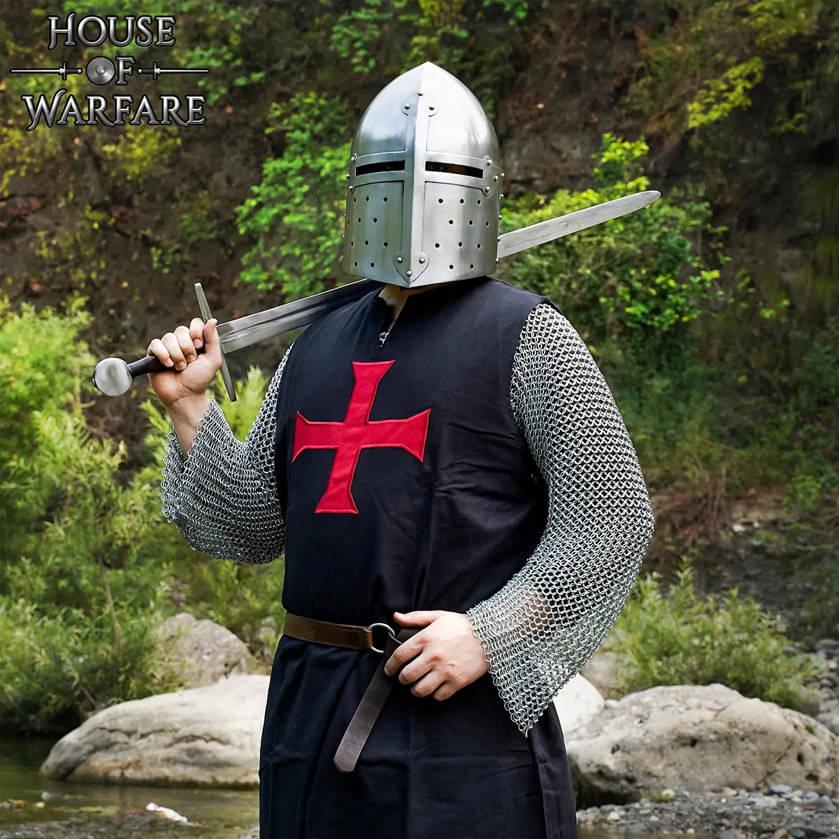 This Sugar Loaf Helmet shows strength and practicality of medieval headgear, to provide protection as well as comfort for long wear. Handcrafted from durable 18-gauge steel, it has the classic pointed top and narrow eye slits like the helmets of knights and soldiers from the 12th to 15th centuries. The shape deflects sword strikes and other blows, making it one of the most reliable designs of the High Middle Ages.
