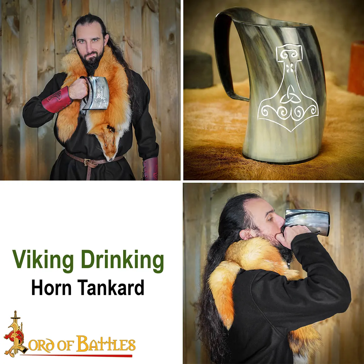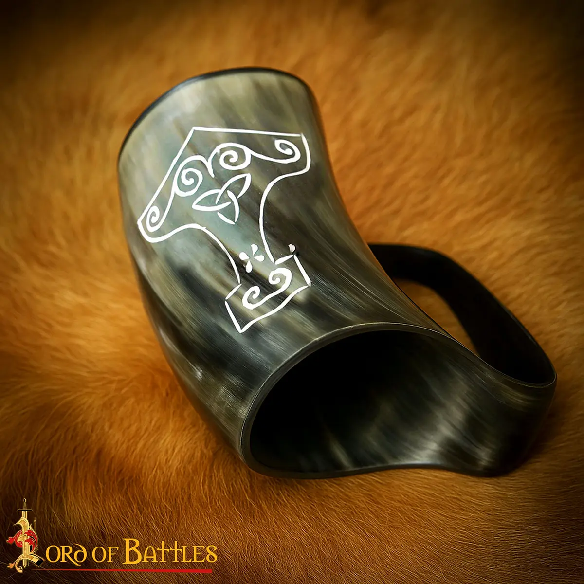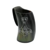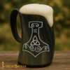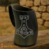 Medieval Viking Mjolnir Horn Tankard Beer Mug Handcrafted Genuine Ox Horn