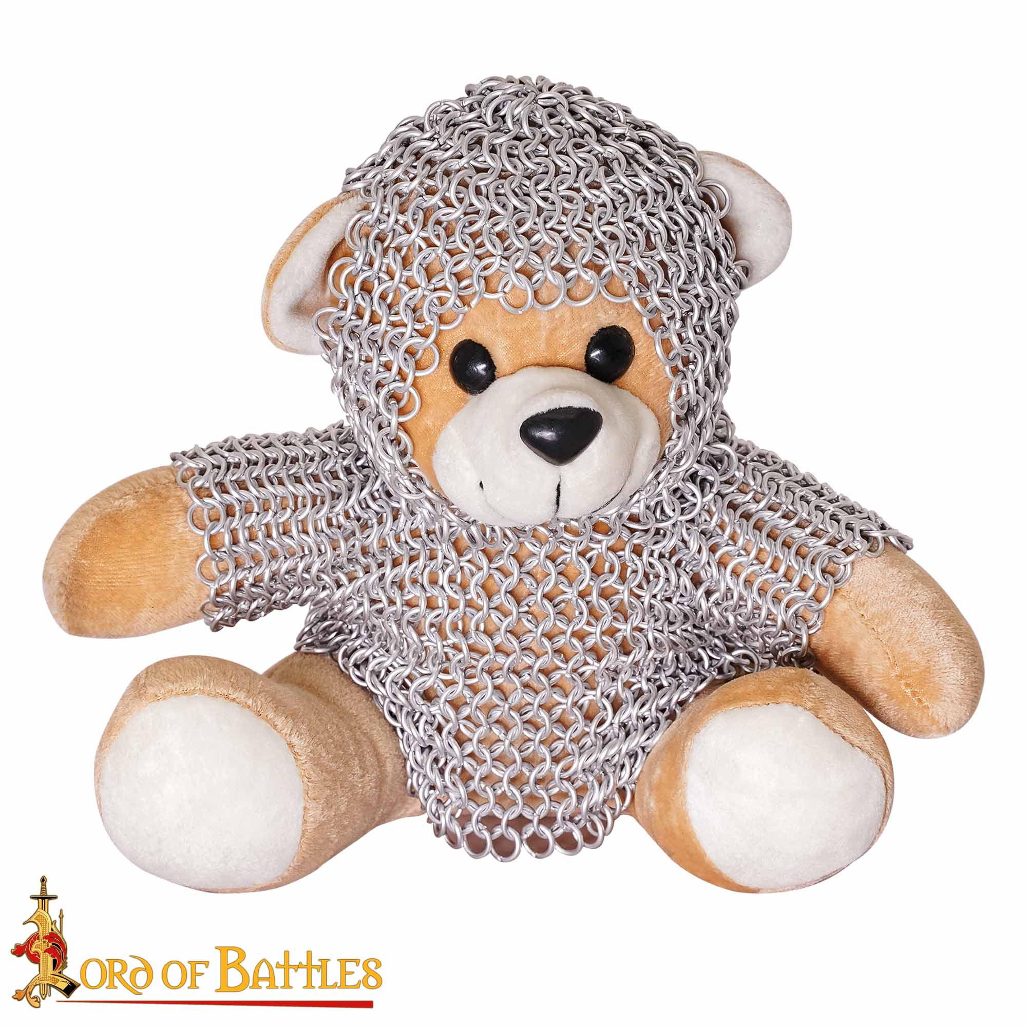 Each teddy is lovingly outfitted in real aluminium chainmail, woven by hand using 6mm, 17-gauge anodized rings in the traditional 4-in-1 pattern, the same method used for centuries to protect warriors in battle. The result? A truly unique plush companion that radiates character, craftsmanship, and storytelling potential.