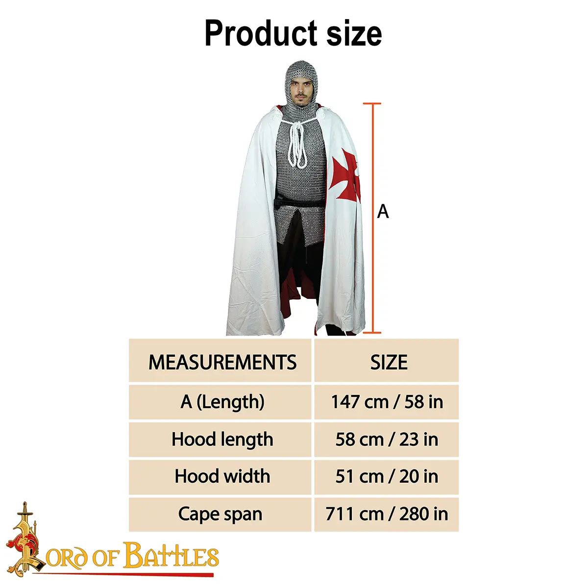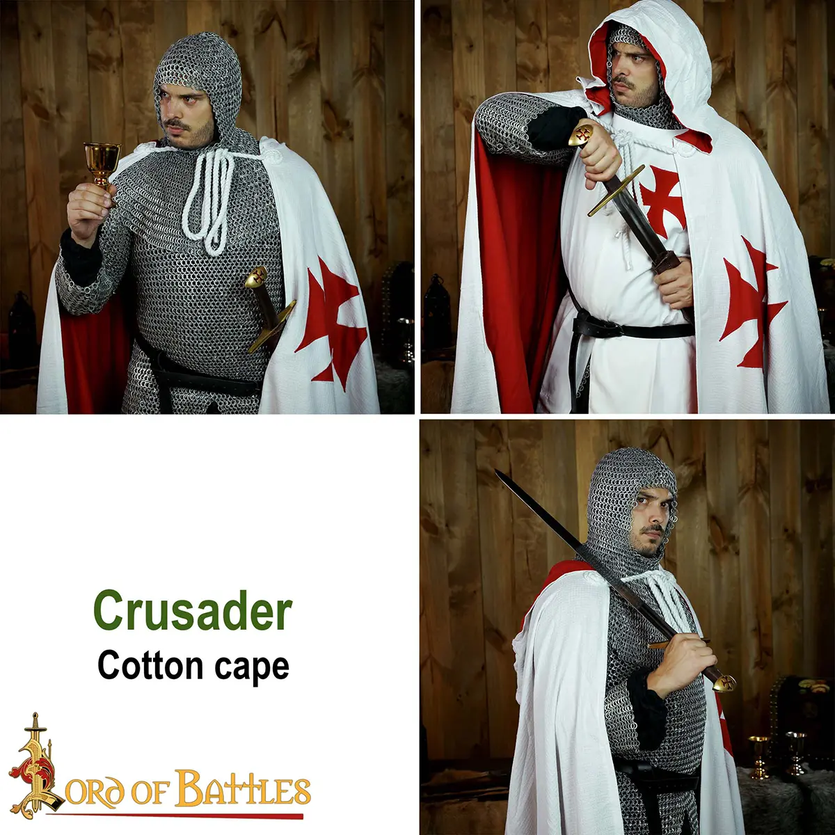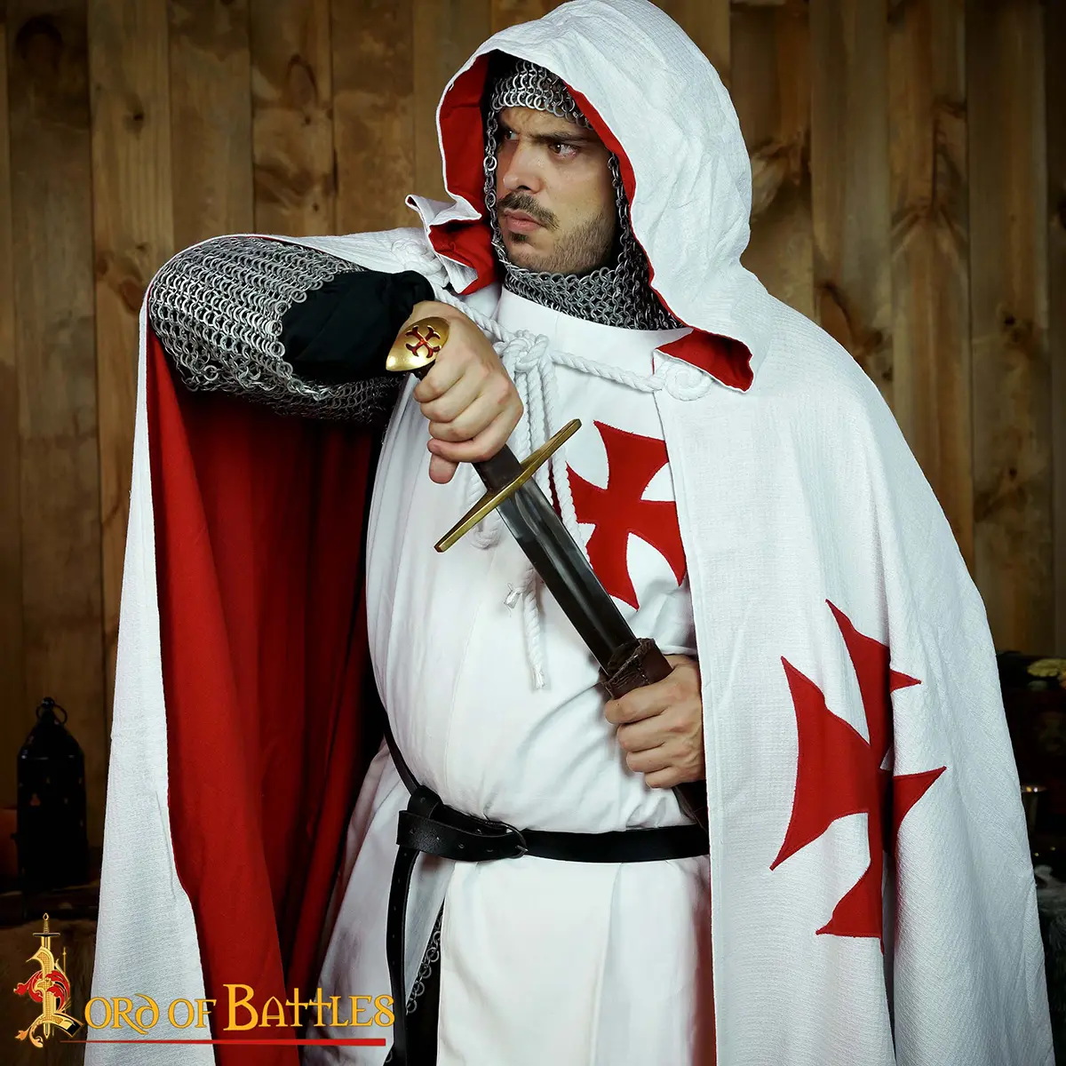 Perfect for LARP, medieval fairs, crusader themes, and ceremonial use, this cape pairs beautifully with a Crusader tunic, gambeson, or chain mail for a complete knightly ensemble.