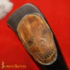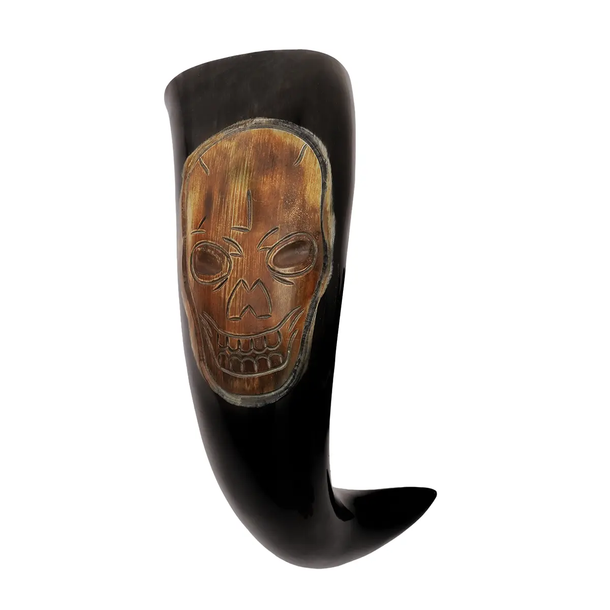 Be it glugging ales with your friends or simply adorning your décor, our “Raiding Pirate” drinking horn with an engraved skull motif over a charred speck, is just the right fit! Its unique design and visually appealing rugged appearance make it great for gifting it to your loved ones as well! Since it comes with a bag, it can effortlessly be taken care of for years to come!