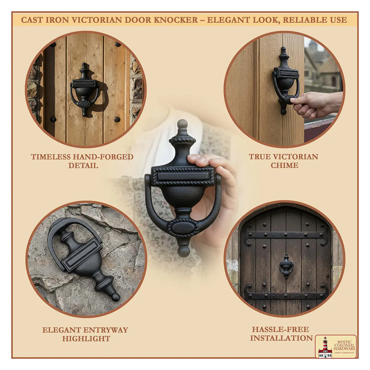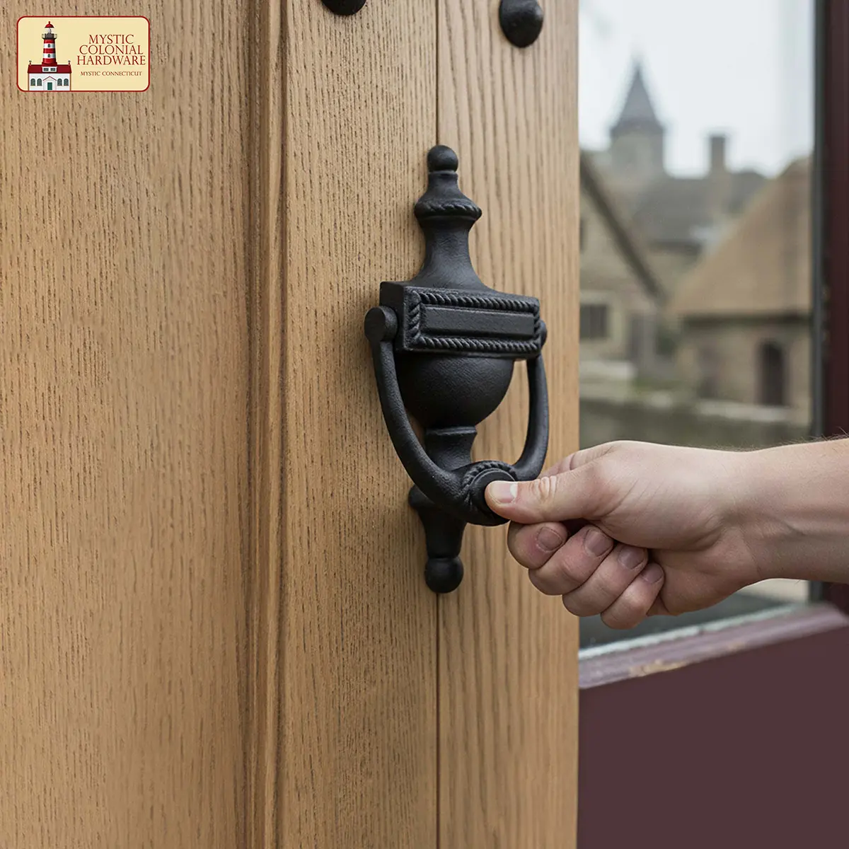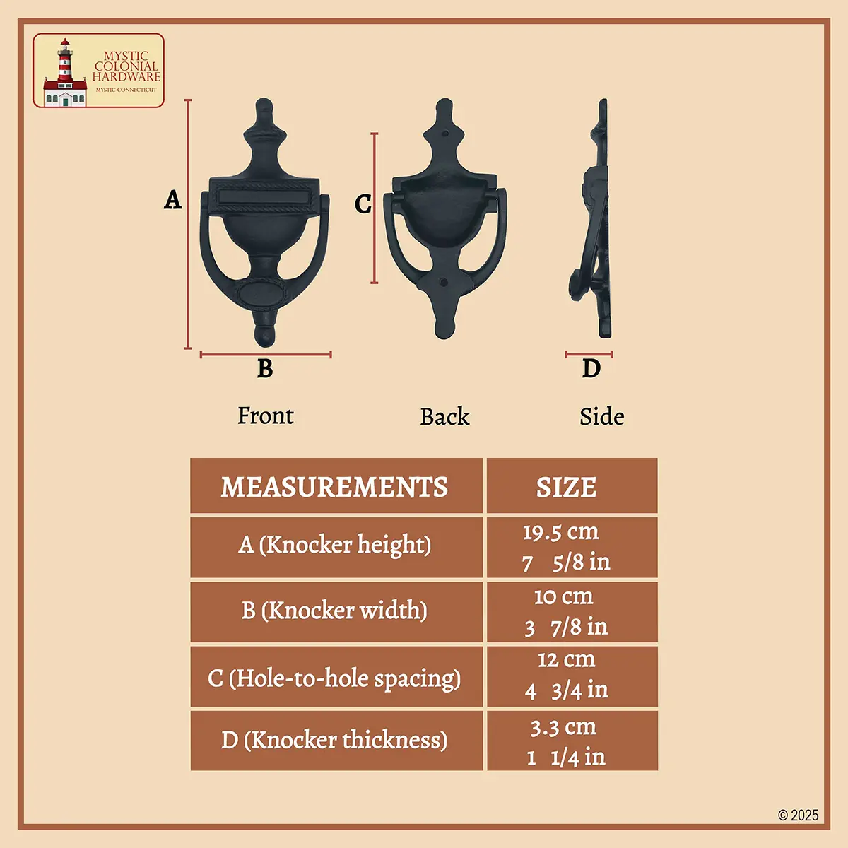 Make a classic impression with the Traditional Style Front Door Knocker. Crafted from cast iron with a rustic, oil-blackened finish, this urn-shaped design adds timeless charm and historical elegance to your entryway—perfect for cottages, manors, or medieval-inspired homes.