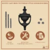 Made from solid cast iron, this knocker is built to endure both the elements and frequent use. The oil-blackened finish enhances its rustic appeal while offering resistance against rust and wear. The knocker produces a satisfying, rich tone that won’t go unnoticed when announcing guests.