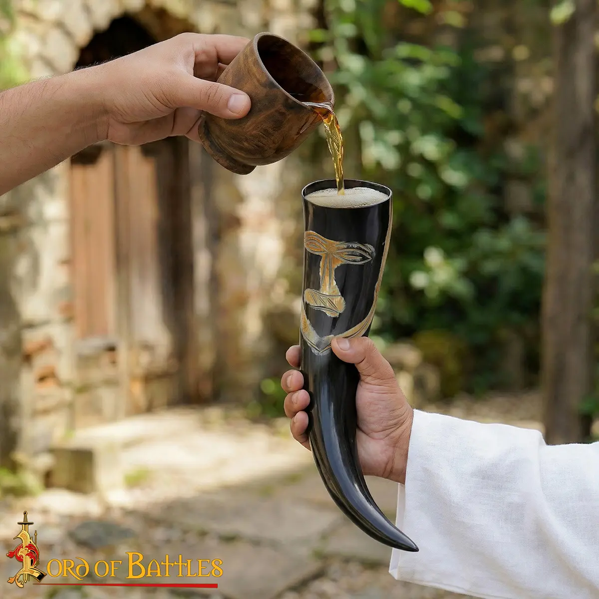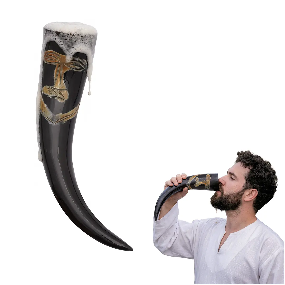 Crafted from ethically sourced natural ox horn, each drinking horn has its own unique patterns, textures, and color variations. No two pieces are the same, so every viking ox horn carries its own individuality and authenticity. The natural curves of the horn are carefully polished to create a smooth finish while preserving its raw, organic appeal.