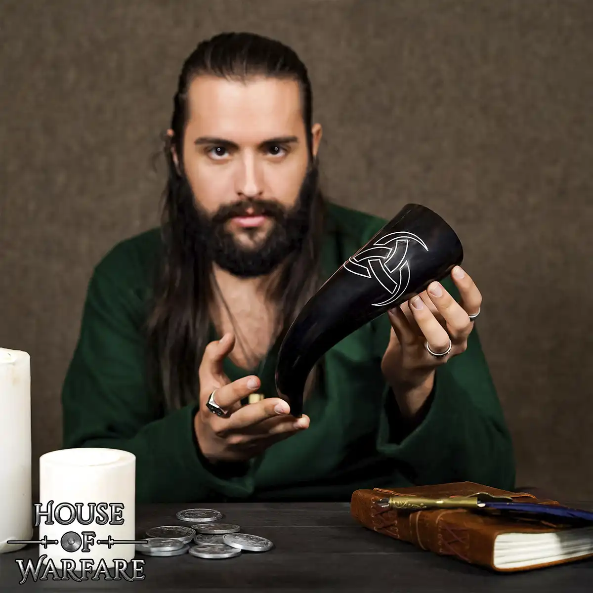Crafted from ethically sourced natural ox horn, each piece has its own unique grain patterns, shades, and textures. No two horns are exactly the same. The natural variations in color, ranging from light amber to deep earthy tones, make every Norse drinking horn one of a kind.