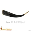 This drinking horn is handmade from a genuine Ox horn. The total capacity of the horn is approx. 300-400 ml (of a liquid with up to 20% alcohol content). Please avoid dishwashers and hot beverages. Before use, make sure to wash under running water. For a longer life, treat with bees’ wax after each use. Please note this is a natural product that decays with time and, hence cracks may come.