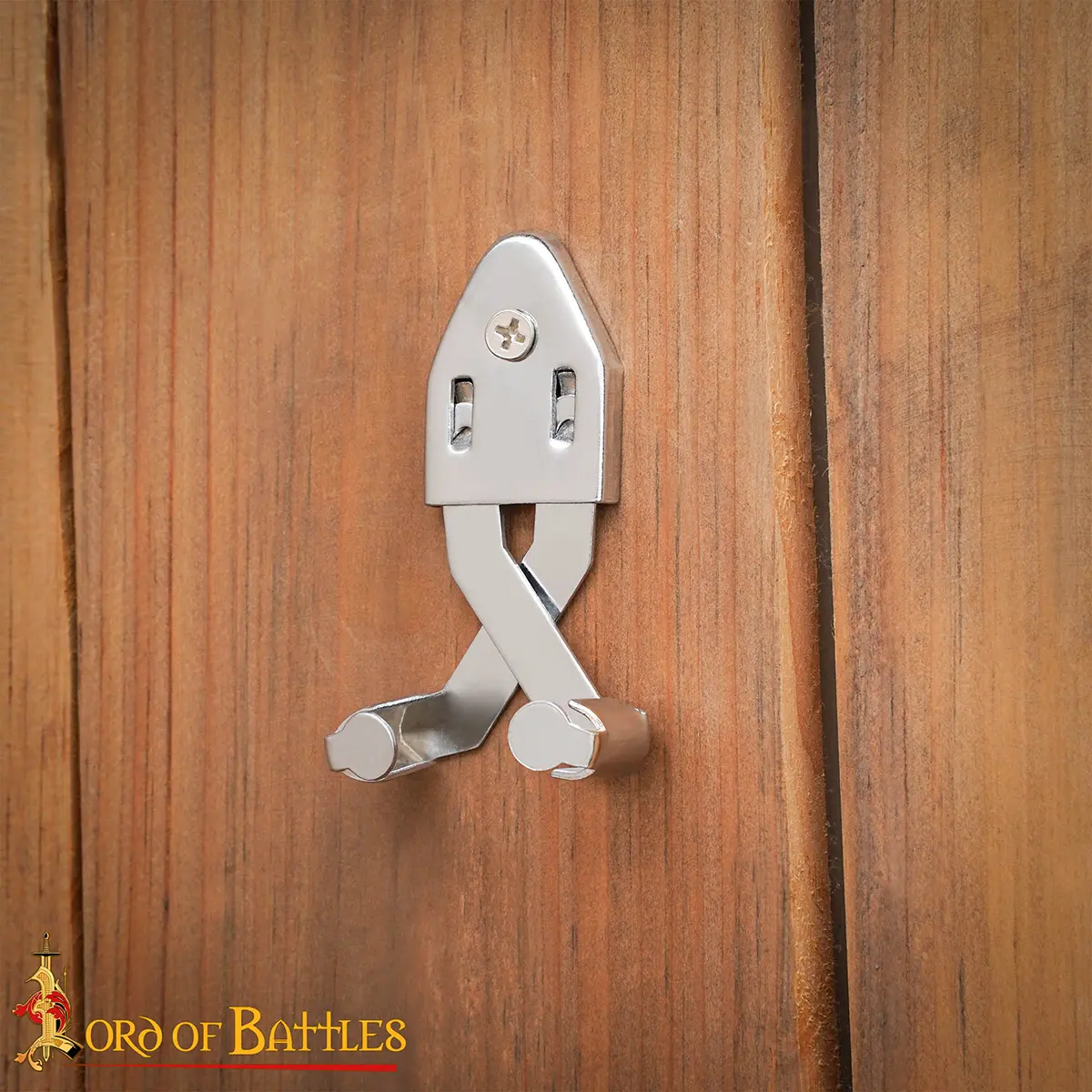 Showcase your collection with confidence using this handcrafted steel sword hanger, designed for durability, functionality, and authentic medieval style.What sets this product apart is its adjustability; the design permits smooth adjustment according to the width of your sword’s crossguard, ensuring a snug and reliable fit for your unique pieces.