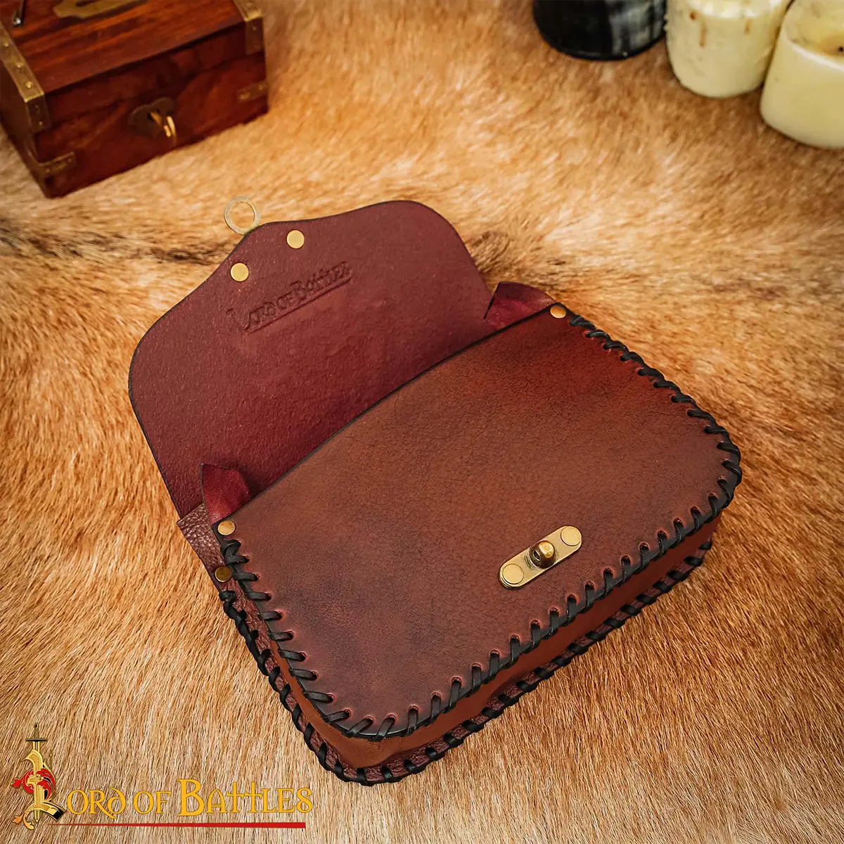 Made from genuine leather with a thickness ranging from 2.8 – 3 mm, this leather waist bag is durable and holds its shape even after repeated use. The braided leather edges enhance its strength as well as its historical appeal. The antique-finish brass clasp gives a secure fastening with an authentic medieval look.