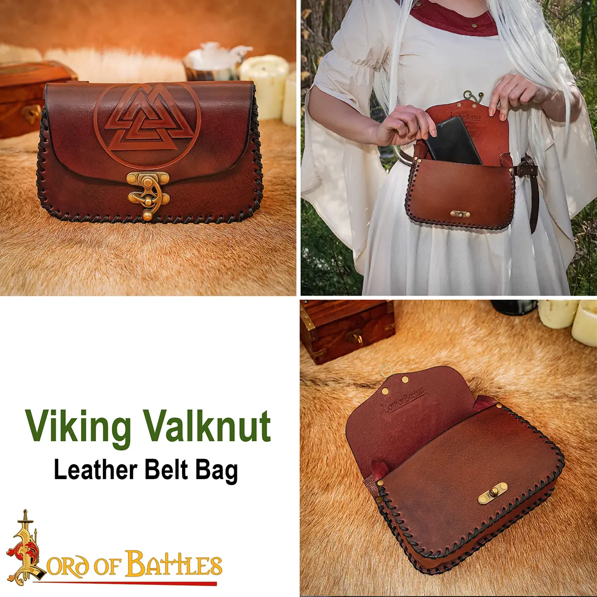 Valknut Leather Waist Bag – Handcrafted Viking Belt Pouch