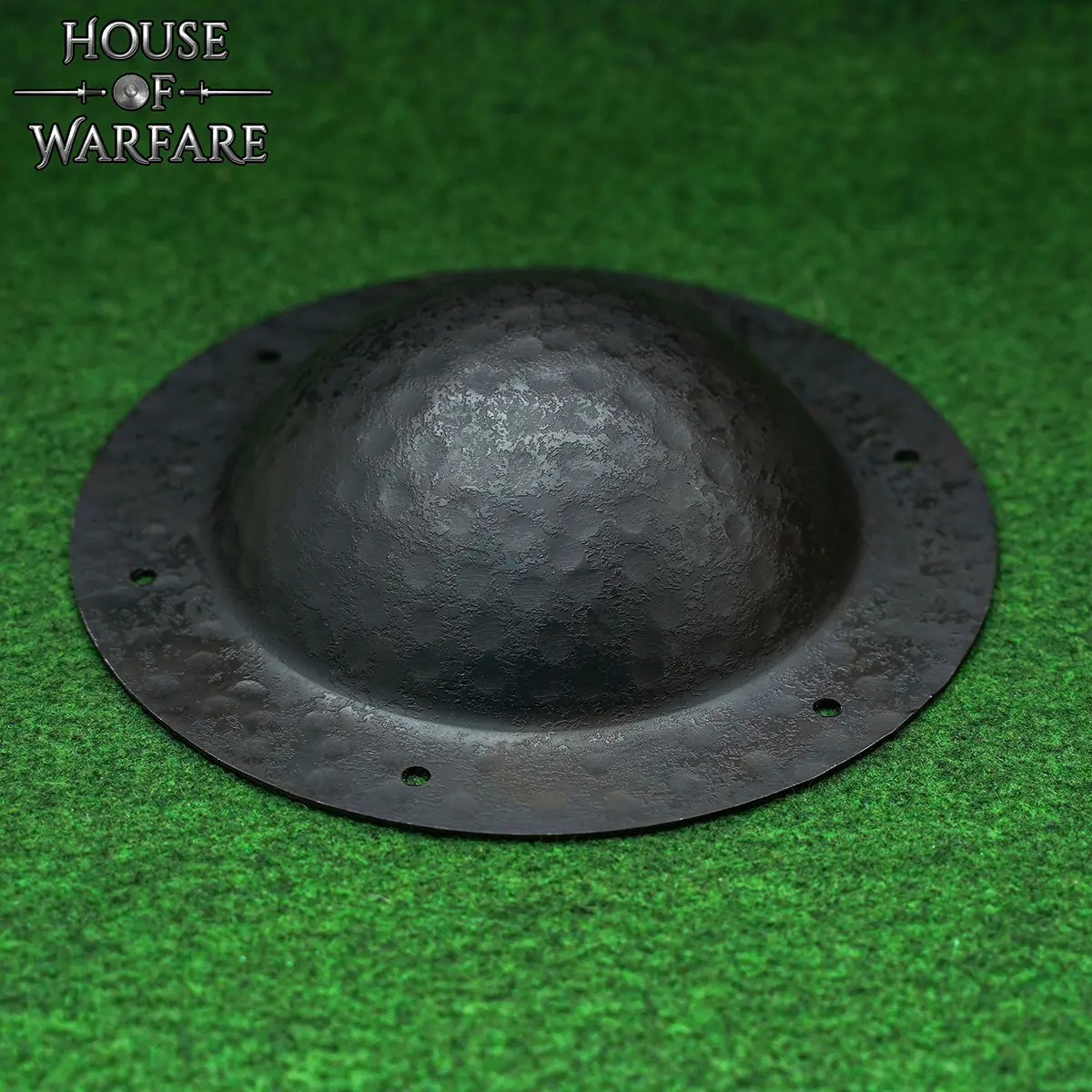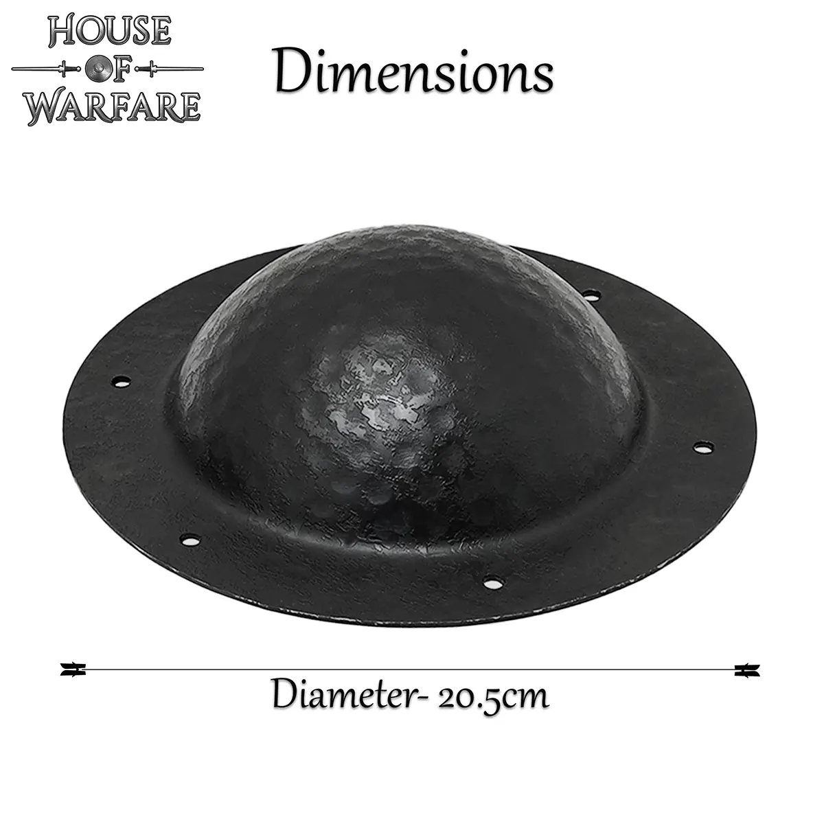 With an outer diameter of approximately 7.9 inches, this boss provides ample space to protect the hand while still maintaining the balance and handling expected of historical shields. The dome is deep and rounded, ideal for gripping your shield’s central handle with full clearance. Pre-drilled mounting holes make installation on your wooden shield quick and secure.