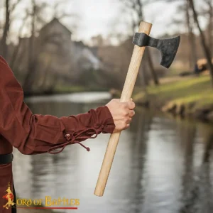Bearded axes were popularly used during the Viking Age for combat, woodworking and daily survival. The extended lower blade helped the warriors to hook shields during battle or perform precise carving work. This design made the Viking axe with bearded axe head very effective in both battles as well as daily use for other tasks.