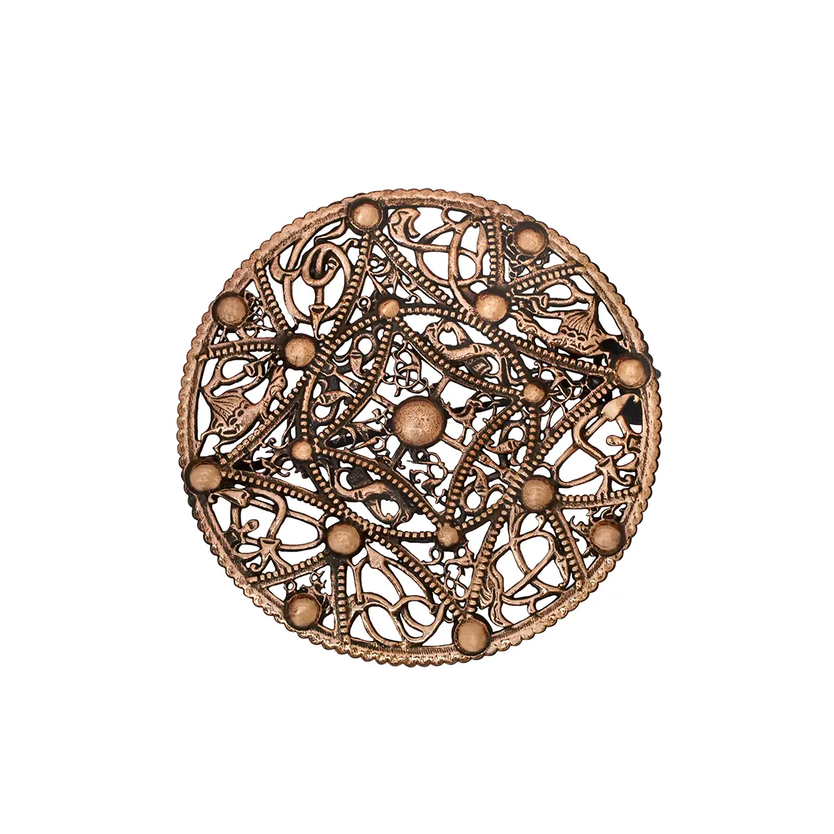 Viking Bronze Round Lost Wax Cast Disc Brooch – 10th Century Norse Style Filigree Pattern