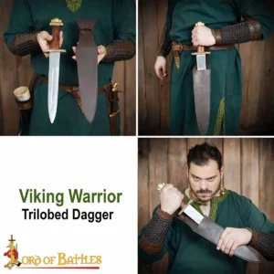 Imagine yourself at a historical reenactment, dressed in authentic Viking attire, your Viking dagger gleaming in the sunlight. It’s more than just a weapon; it’s a conversation starter, a symbol of power, and a testament to your dedication to preserving the history of these legendary warriors. The tri-lobed pure brass pommel adds an extraordinary design touch, enhancing its aesthetic appeal while ensuring a secure and comfortable grip.