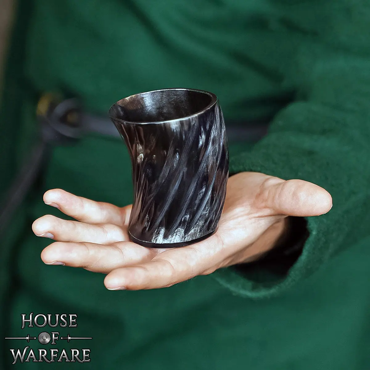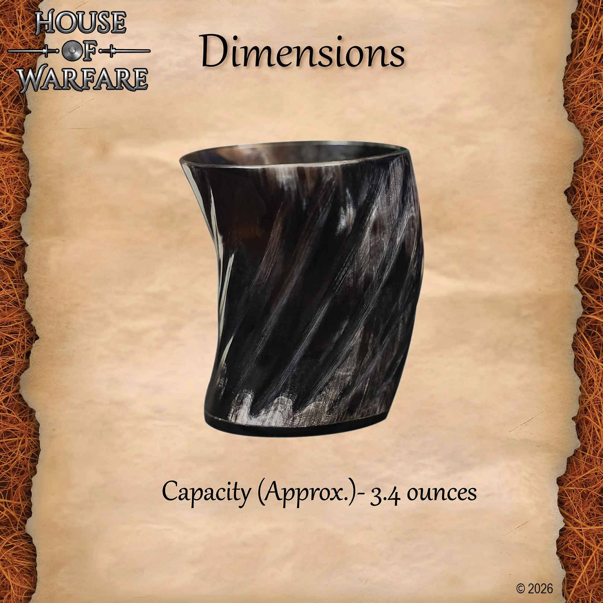 This horn glass is best for cold or room-temperature drinks such as mead, wine, beer. It has a capacity of 3.4 ounces approximately , which might vary with the horn’s shape. It should not be used for hot liquids, as heat can soften the horn and cause warping or cracking. Whether used for themed dinners, feasts or display, it brings an authentic connection to the past.