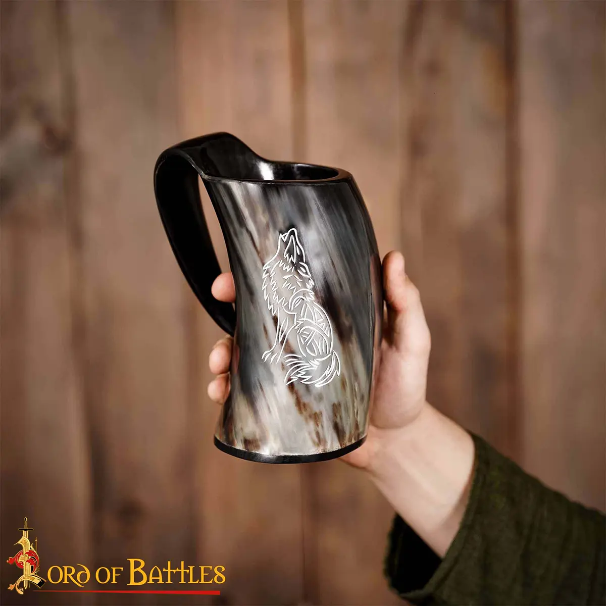 The horn handle is carved from the same piece, shaped for a natural and secure grip. Whether you’re raising it at a longhouse feast, a medieval wedding or a themed festival, this tankard transforms every toast into a saga-worthy moment.