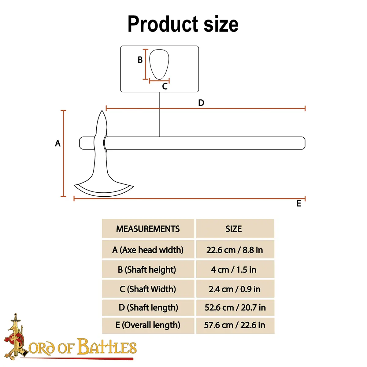 Axe Head Width: 22.6 cm (8.8 in)