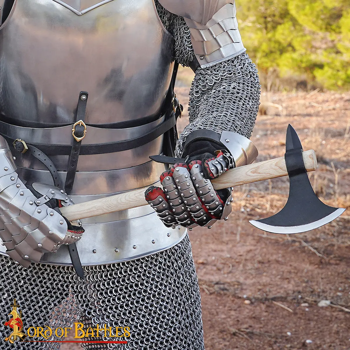 The handle is made from premium Ash wood, carefully selected for its natural strength, flexibility, and shock absorption. Ash has been the traditional choice for axe shafts since ancient times, prized for its ability to withstand impact while remaining lightweight and comfortable to wield. The smooth finish provides a firm grip, giving you both control and balance whether in combat practice, LARP, or display.
