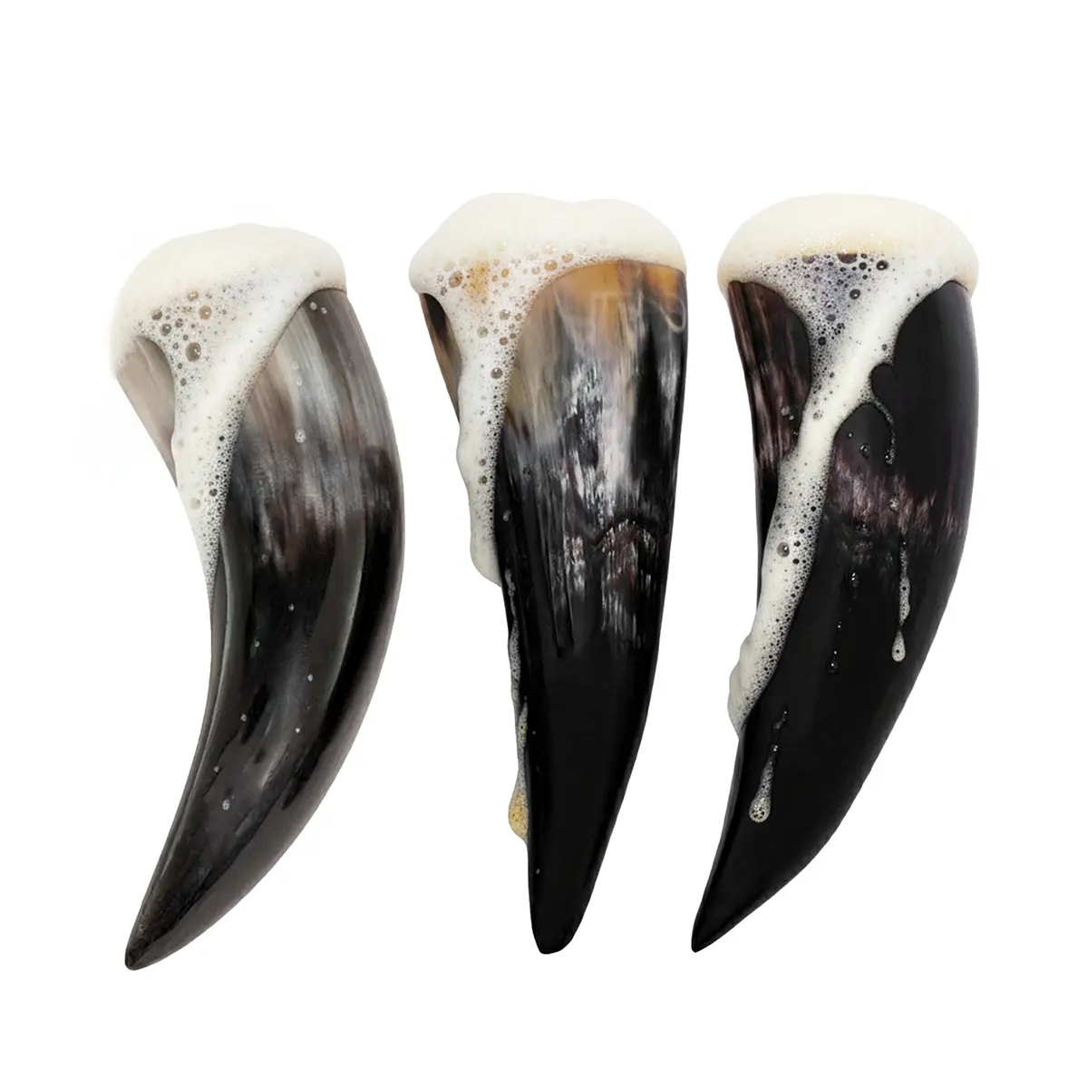 Handcrafted Viking Horn Drink Set: This viking drinking horn set brings the spirit of ancient feasts into your home or gatherings. Each horn is shaped from genuine ox horn, polished for safe beverage use. Natural patterns, coloration make every piece different.