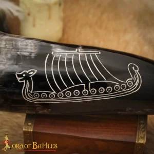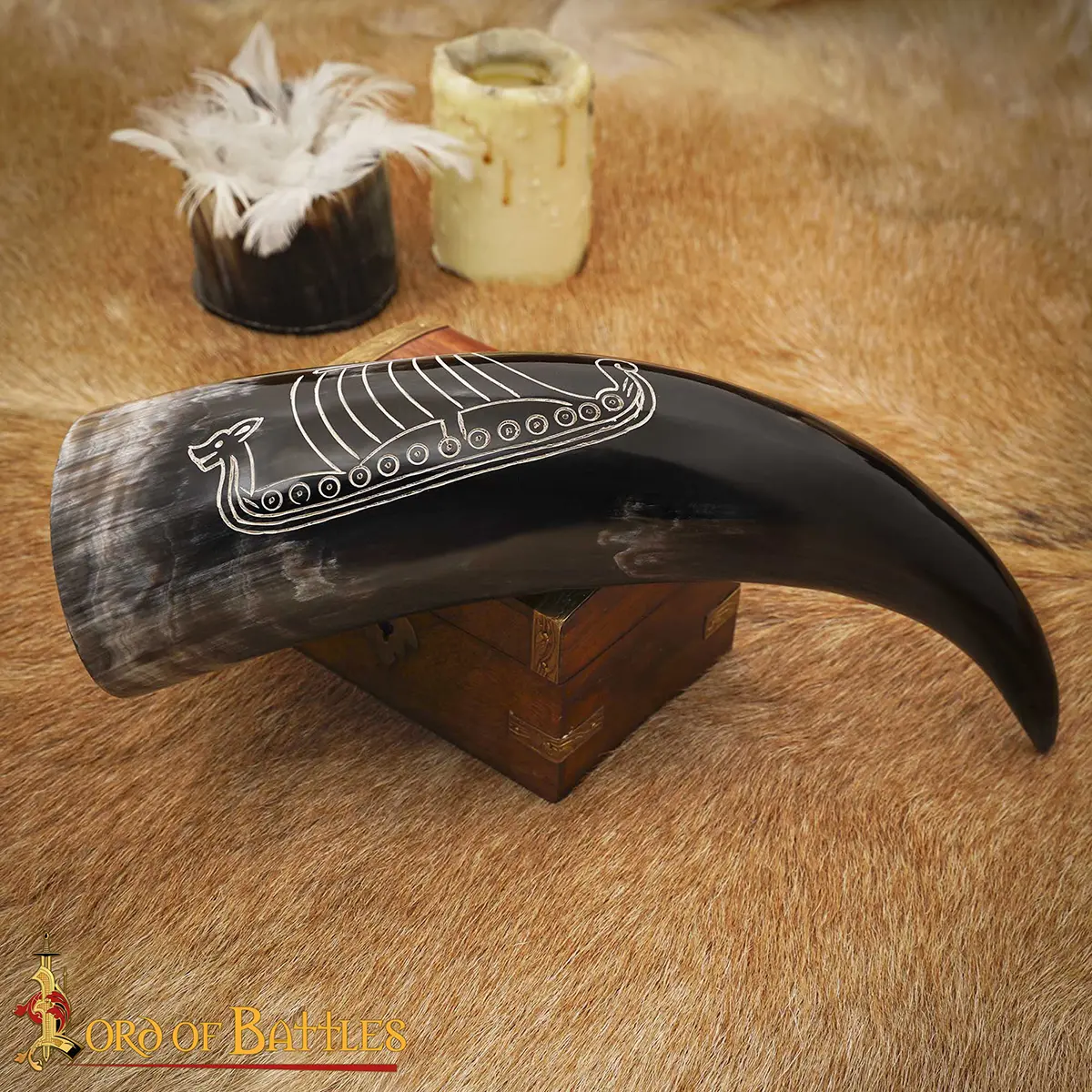 Raise a toast in true Norse tradition with this Viking horn mug, inspired by the people of the Viking Age. Handcrafted from genuine ox horn and engraved with a proud Viking longship, this drinking vessel shows the spirit of exploration, strength, and celebration.