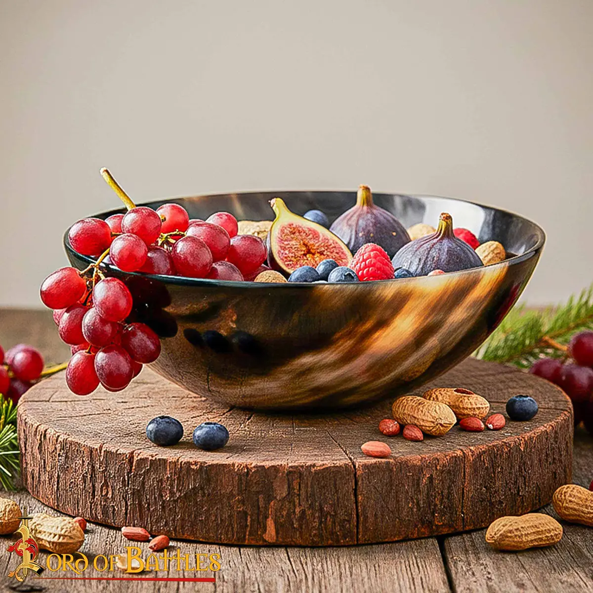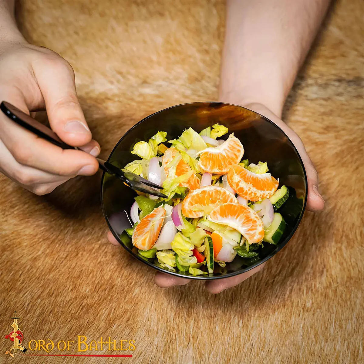 Historical Use: In the Viking Age and throughout the medieval period, horn was used quite often as a material for household utensils. As it was durable, lightweight, naturally water-resistant as well as easily available from livestock. Horn bowls did not easily crack and could be polished smooth, making them suitable for soups and stews.