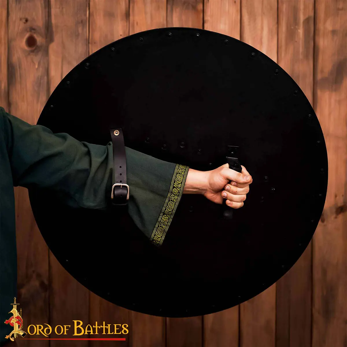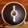 On the reverse, a reinforced wooden grip allows reliable handling, whether for stage combat, or LARP events. Beyond function, this shield doubles as a powerful decorative piece, perfectly suited for a mead hall, study, or historical collection.